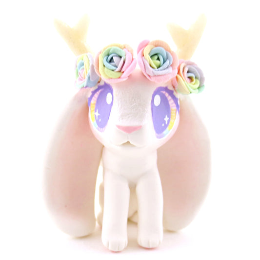 Rainbow Rose Flower Crown Jackalope Wolpertinger Figurine - Polymer Clay Animals