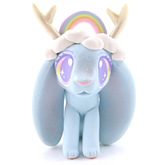 Rainbow and Cloud Crown Jackalope Wolpertinger Figurine - Polymer Clay Animals
