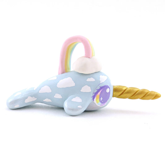 Rainbow and Cloud Blue Baby Narwhal Figurine - Polymer Clay Animals