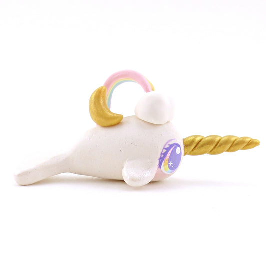 Rainbow, Cloud and Moon Narwhal Figurine - Polymer Clay Animals