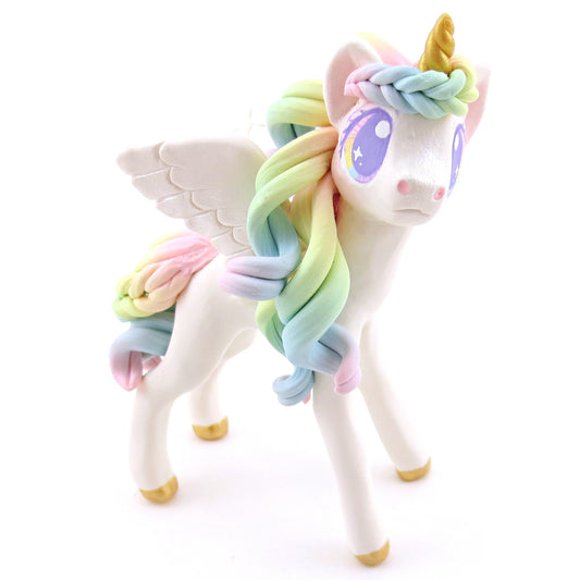 Pastel Rainbow Ombre Unicorn Pegasus Figurine - Polymer Clay Animals