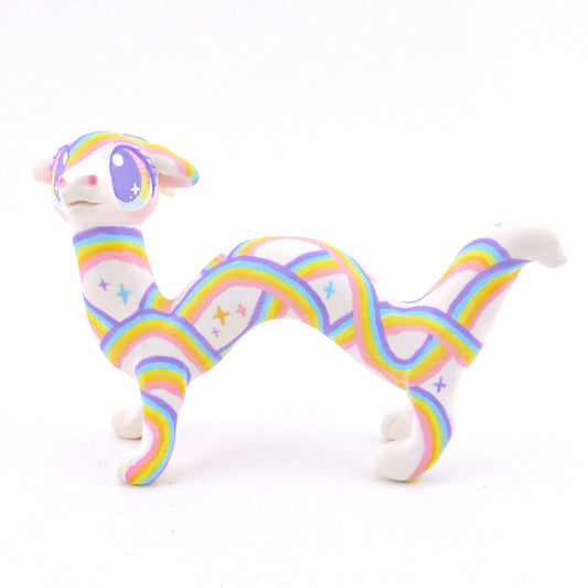 Rainbow Painted Noodle Dragon Figurine - Polymer Clay Magical Creatures