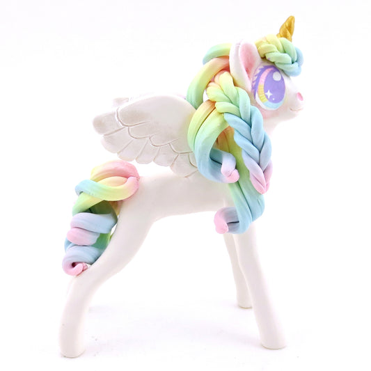 Rainbow Winged Unicorn Pegasus Figurine - Polymer Clay Magical Creatures