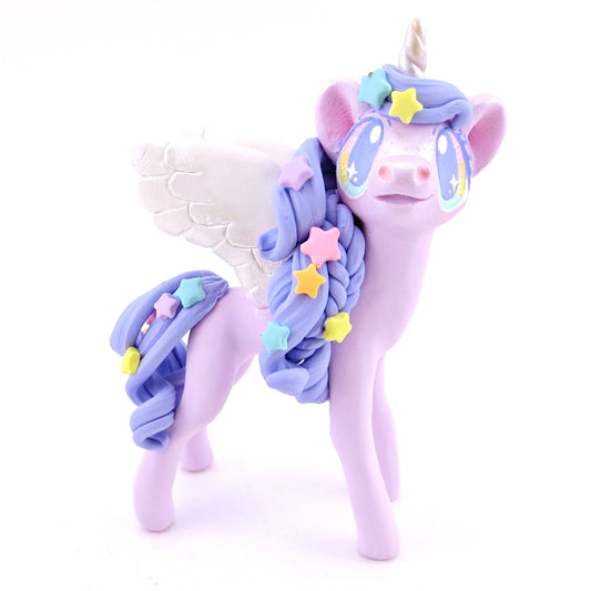 Purple and Rainbow Star Winged Unicorn Pegasus Figurine - Polymer Clay Magical Creatures