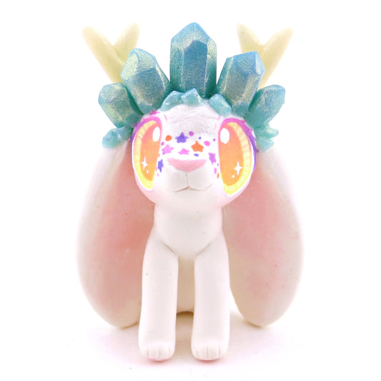 Light Blue Crystal Crown Jackalope Wolpertinger Figurine - Polymer Clay Magical Creatures