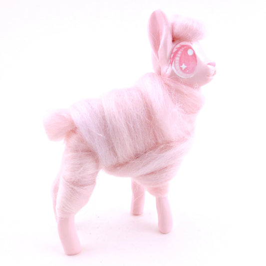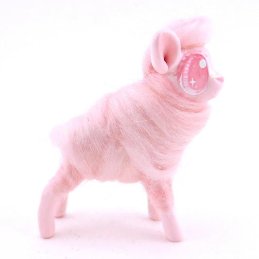 Pink Cotton Candy Lamb Figurine - Polymer Clay Magical Creatures