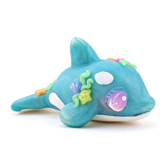 Seashell Blue/Green Orca Figurine - Polymer Clay Ocean Collection