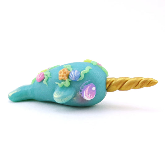 Seashell Blue/Green Narwhal Figurine - Polymer Clay Ocean Collection