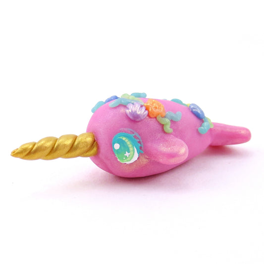 Seashell Pink/Purple Narwhal Figurine - Polymer Clay Ocean Collection