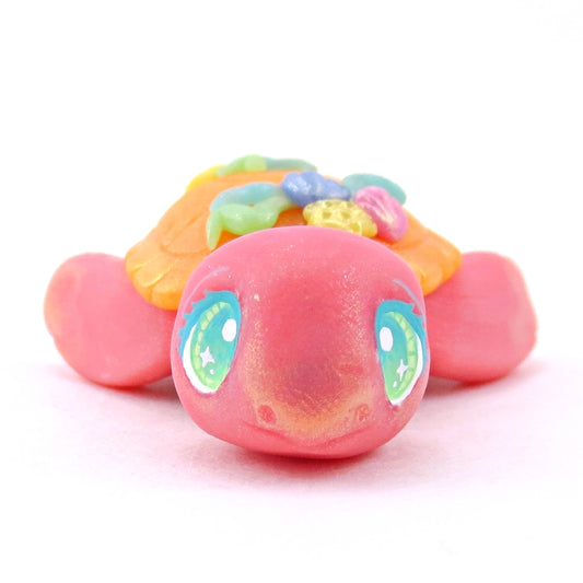 Seashell Pink/Orange/Blue Sea Turtle Figurine - Polymer Clay Ocean Collection
