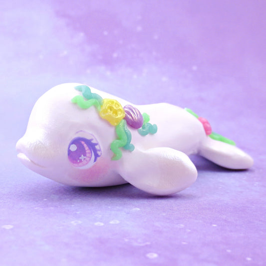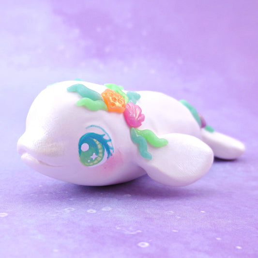 Seashell Beluga Whale with Blue/Green Eyes Figurine - Polymer Clay Ocean Collection