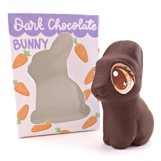 Dark Chocolate Bunny with Box Figurine - Polymer Clay Spring and Easter Animals