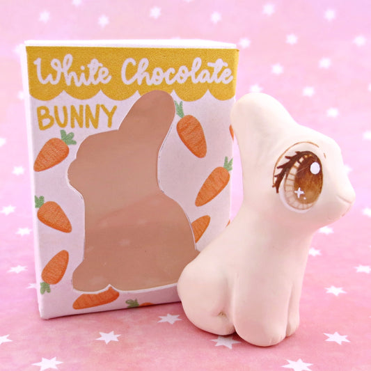 White Chocolate Bunny with Box Figurine - Polymer Clay Spring and Easter Animals