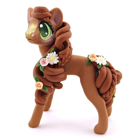 Flower Chestnut Pony Figurine - Polymer Clay Spring and Easter Animals