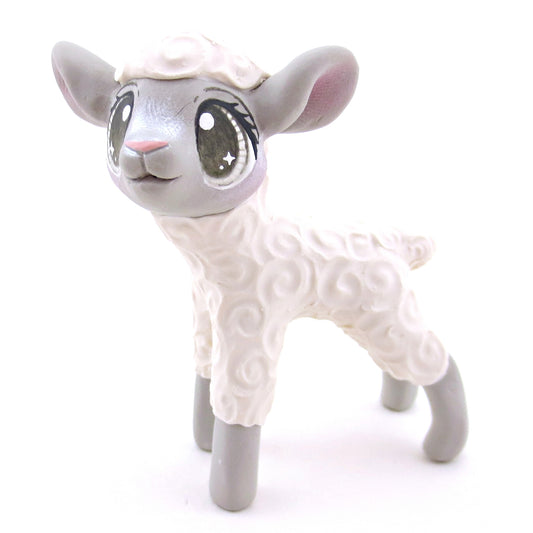 White and Grey Lamb Figurine - Polymer Clay Spring and Easter Animals