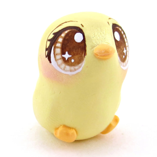 Yellow Pastel Chick with Brown Eyes Figurine - Polymer Clay Spring and Easter Animals
