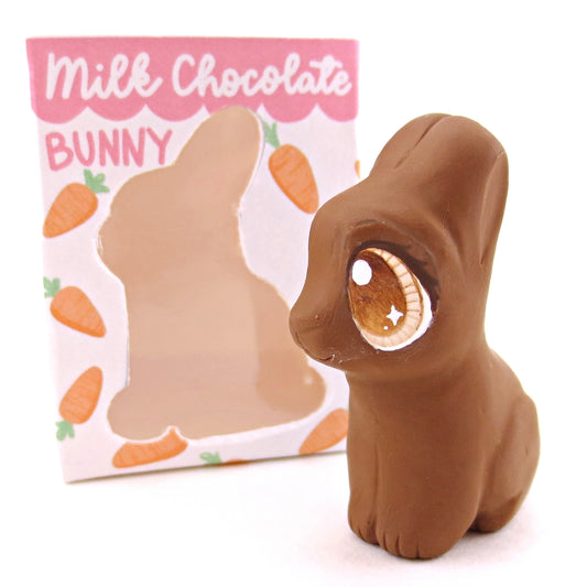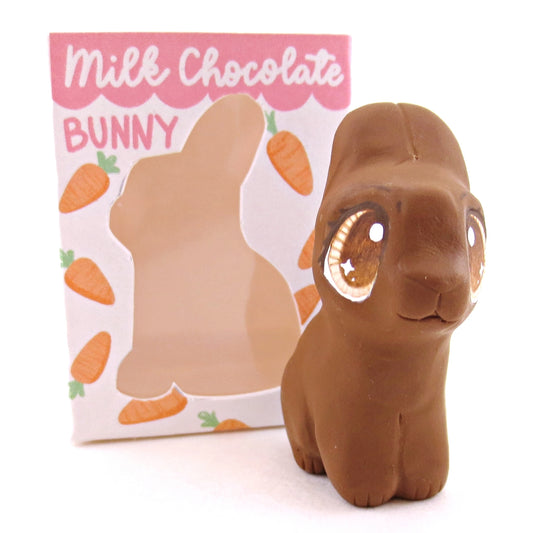 Milk Chocolate Bunny with Box Figurine - Version 2 - Polymer Clay Spring and Easter Animals