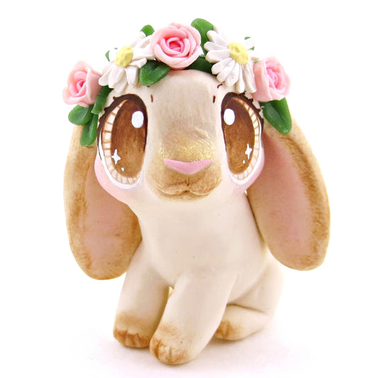 Flower Crown Cream Point Holland Lop Rabbit Figurine - Polymer Clay Spring and Easter Animals