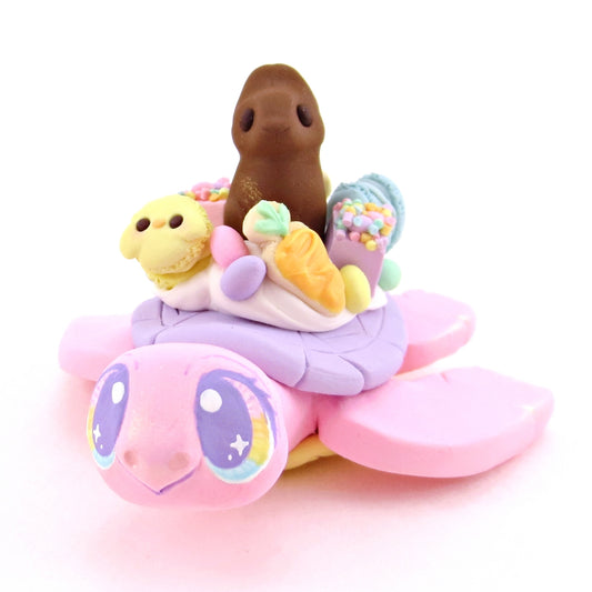 Pink Easter Dessert Turtle Figurine - Polymer Clay Spring and Easter Animals
