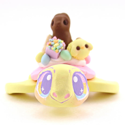 Yellow Easter Dessert Turtle Figurine - Polymer Clay Spring and Easter Animals