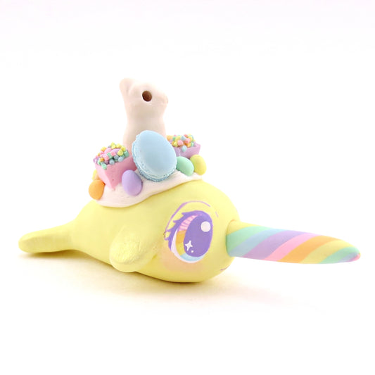 Yellow Easter Dessert Narwhal Figurine - Polymer Clay Spring and Easter Animals