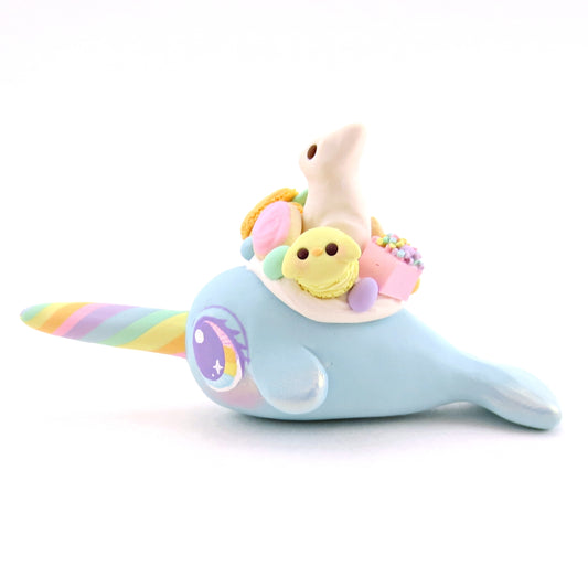 Blue Easter Dessert Narwhal Figurine - Polymer Clay Spring and Easter Animals