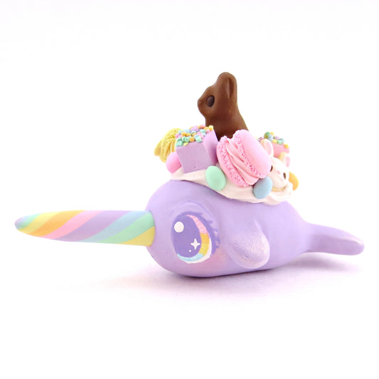 Purple Easter Dessert Narwhal Figurine - Polymer Clay Spring and Easter Animals