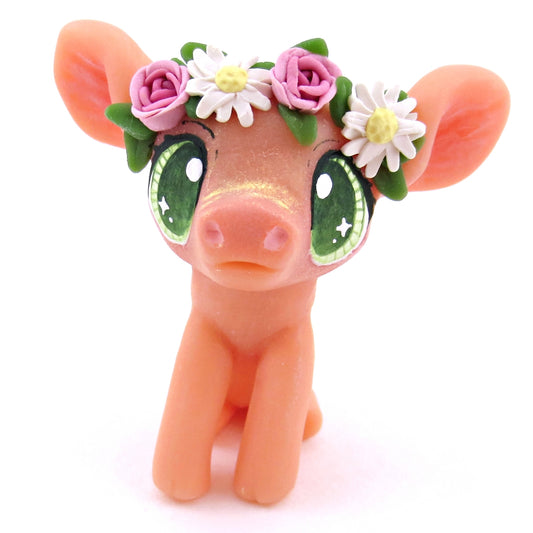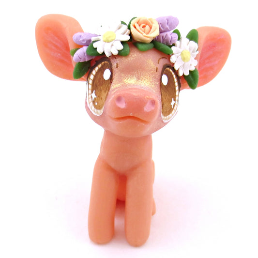 Rose and Daisy Flower Crown Piglet Figurine - Polymer Clay Spring and Easter Animals