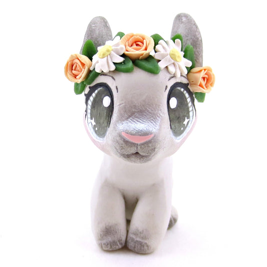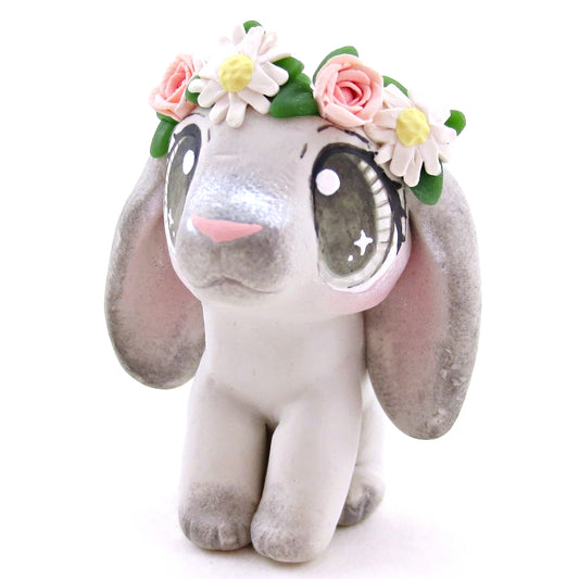 Flower Crown Grey Point Holland Lop Rabbit Figurine - Polymer Clay Spring and Easter Animals