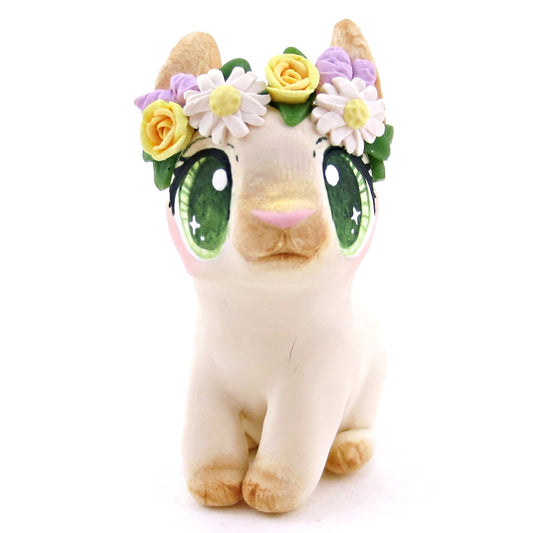 Flower Crown Cream Point Netherland Dwarf Rabbit Figurine - Polymer Clay Spring and Easter Animals