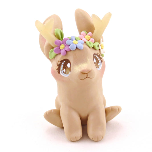 Blonde Flowery Jackalope Figurine - Polymer Clay Animals Fairytale Spring Collection