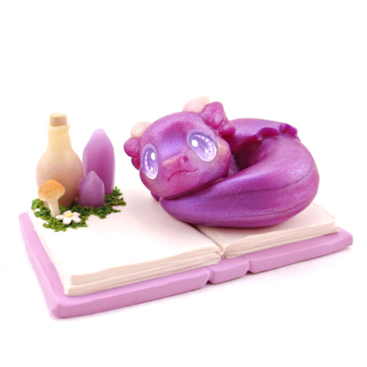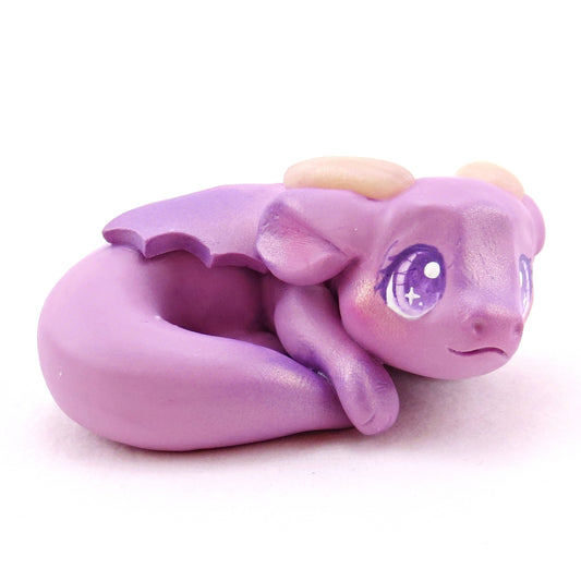 Sleepy Lilac Purple Baby Dragon Figurine - Polymer Clay Animals Fairytale Spring Collection