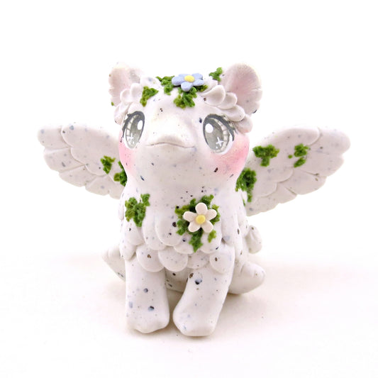 "White Granite" Mossy Gargoyle Dragon Figurine - Polymer Clay Animals Fairytale Spring Collection