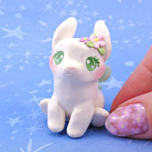 Fairy Bunny Figurine - Polymer Clay Animals Fairytale Spring Collection