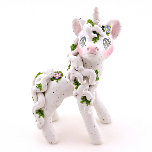 "White Granite" Mossy Gargoyle Unicorn Figurine - Polymer Clay Animals Fairytale Spring Collection