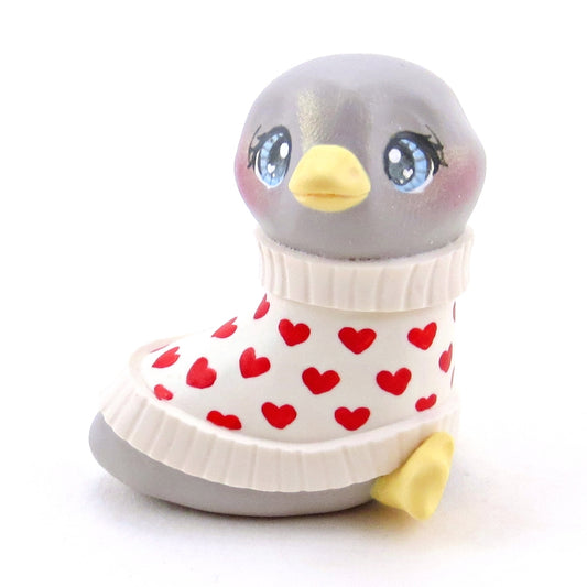 Grey Goose in a Heart Sweater Figurine - Polymer Clay Valentine Collection