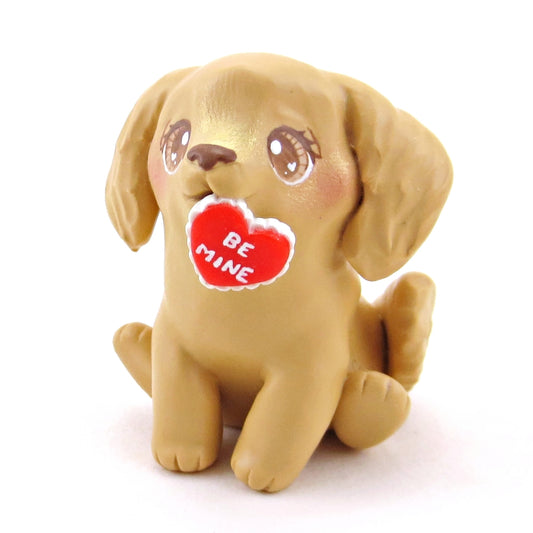 Golden Retriever Puppy Dog with a "Be Mine" Valentine Figurine - Polymer Clay Valentine Collection