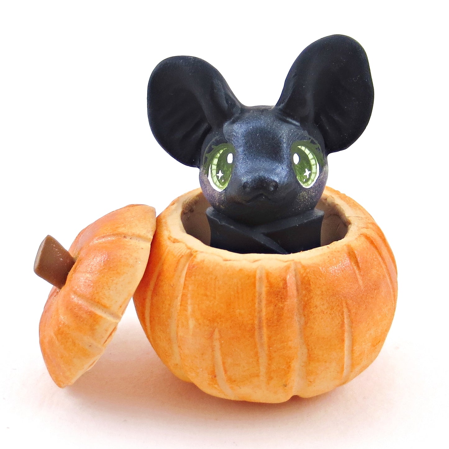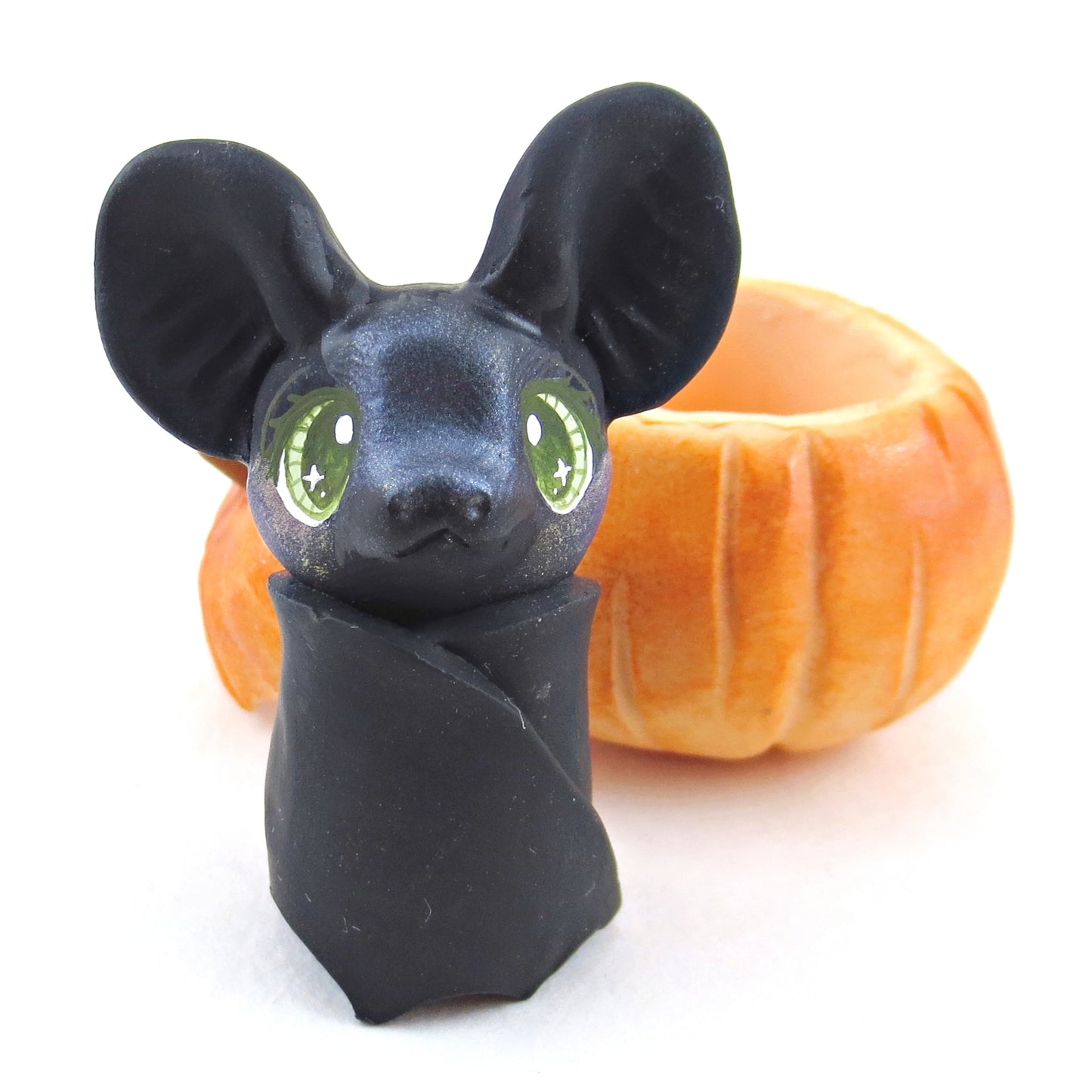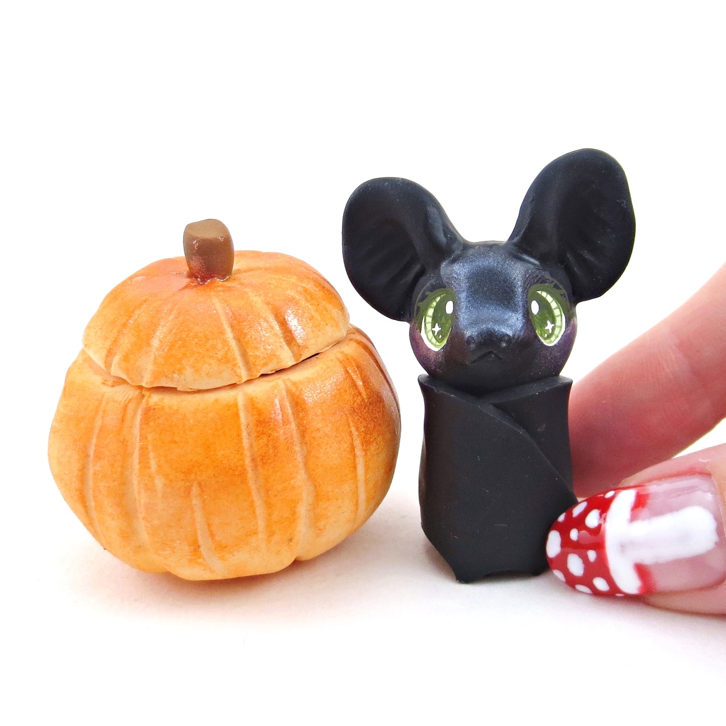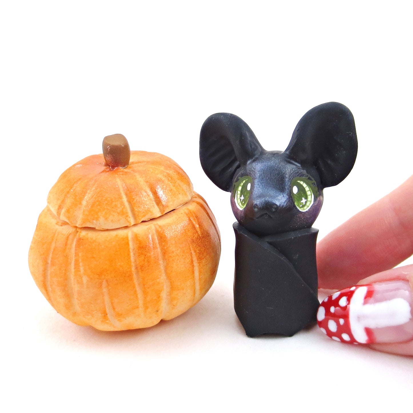 Bat in Pumpkin Figurine - Polymer Clay Fall Collection