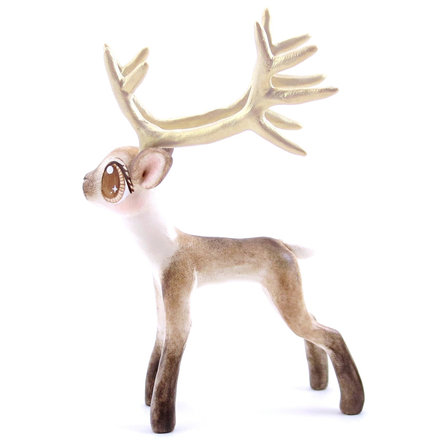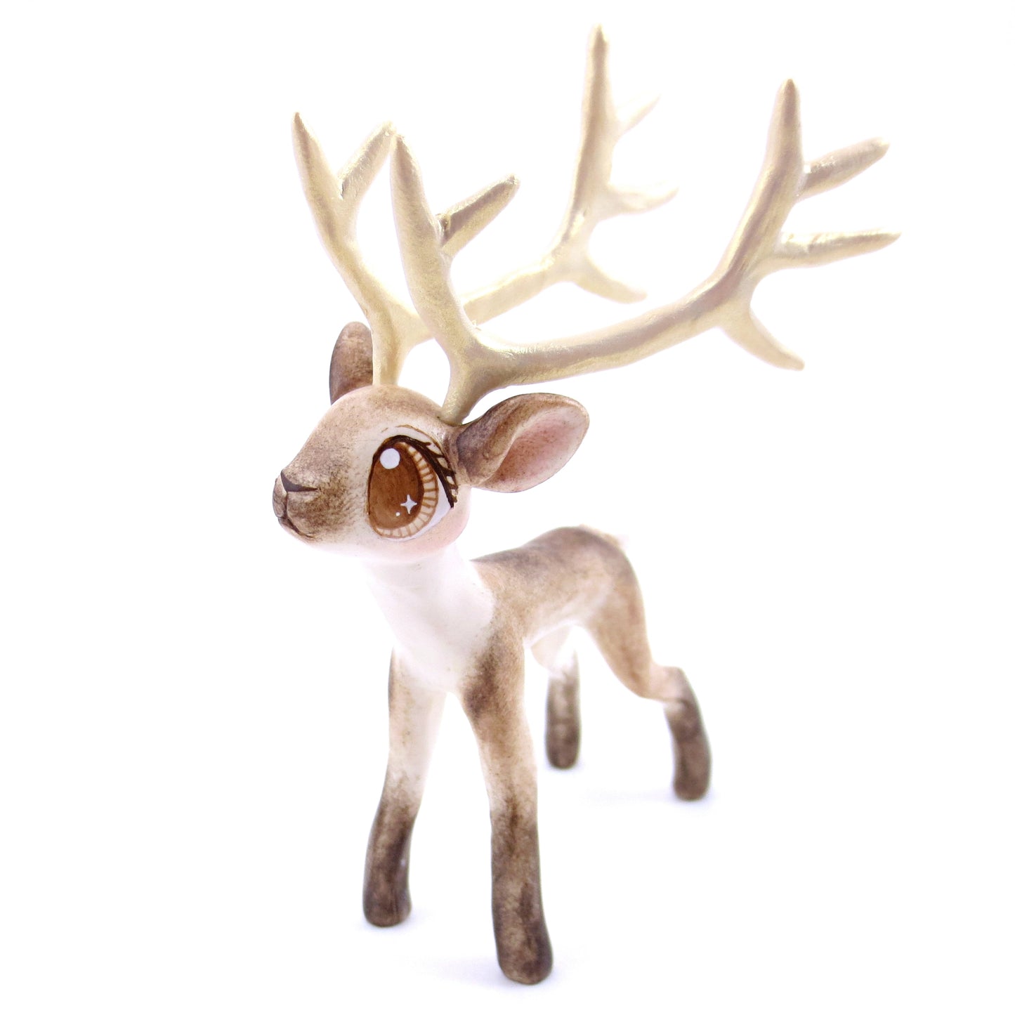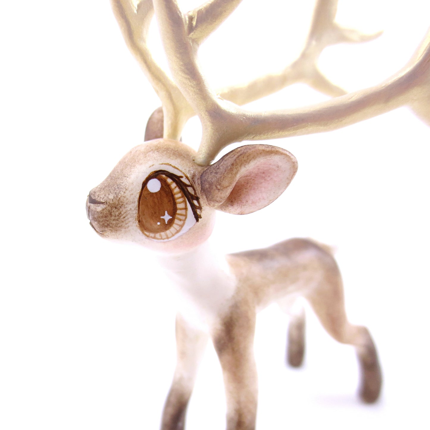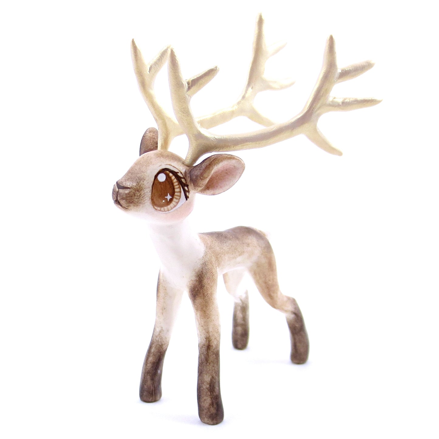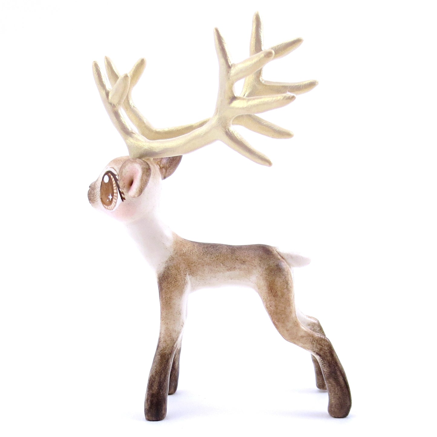 Big-Antlered Reindeer Figurine - Polymer Clay Christmas Animals
