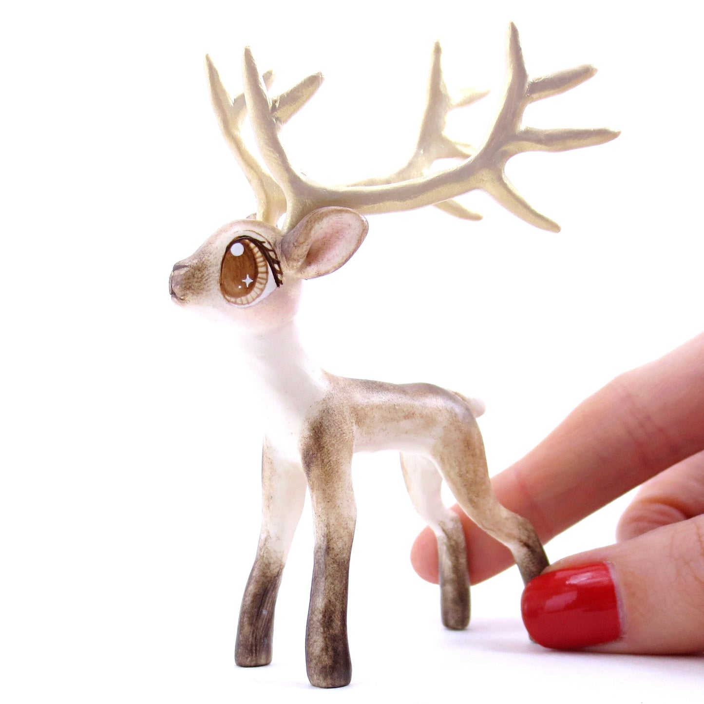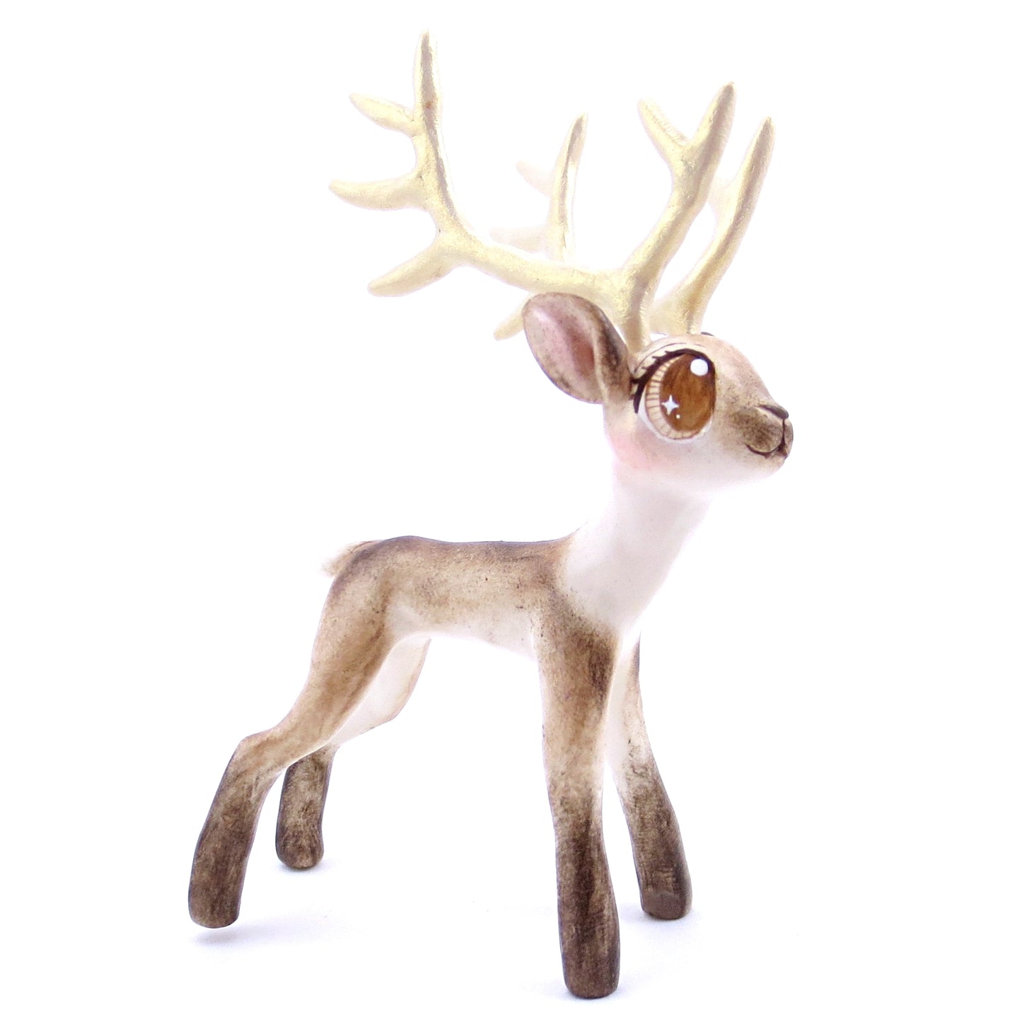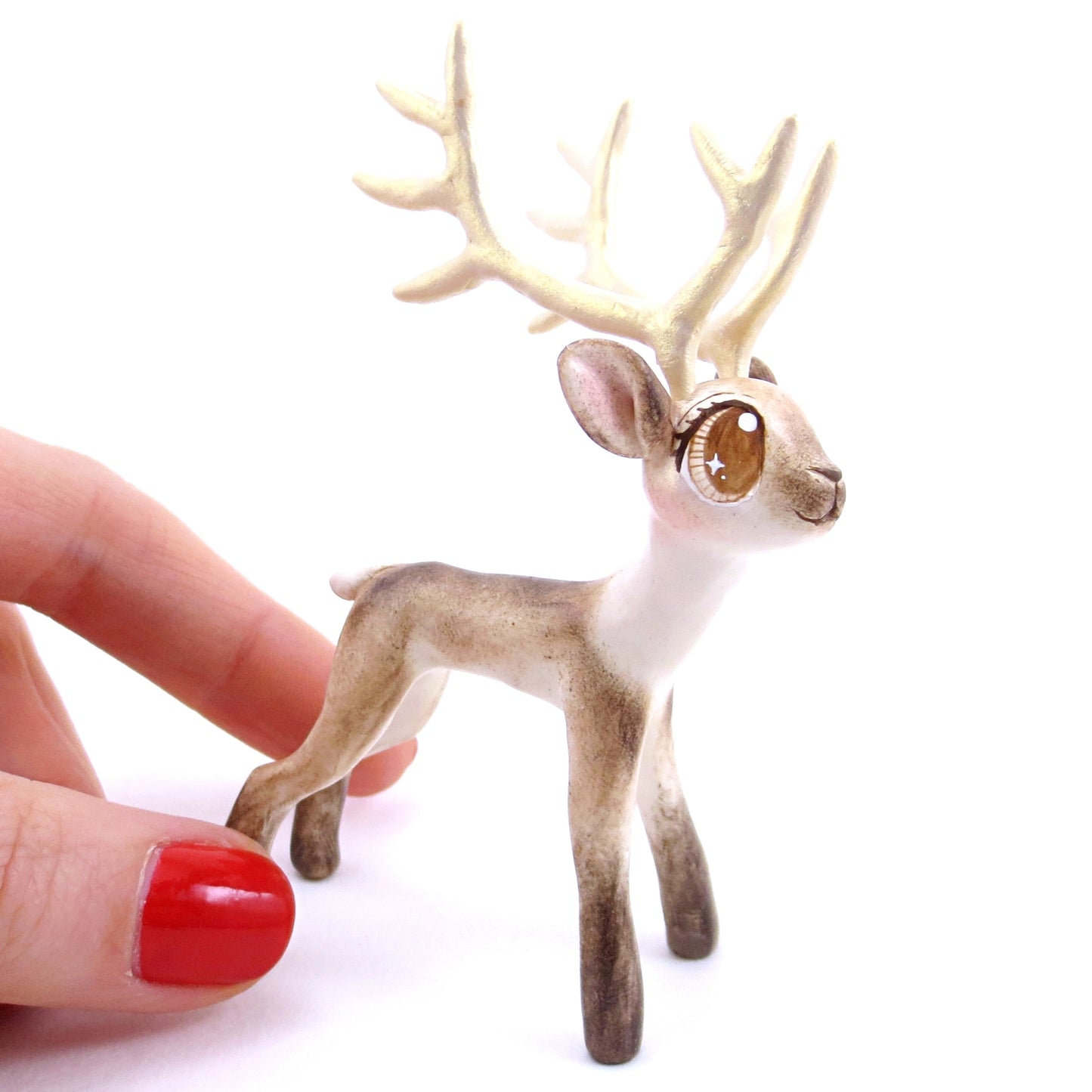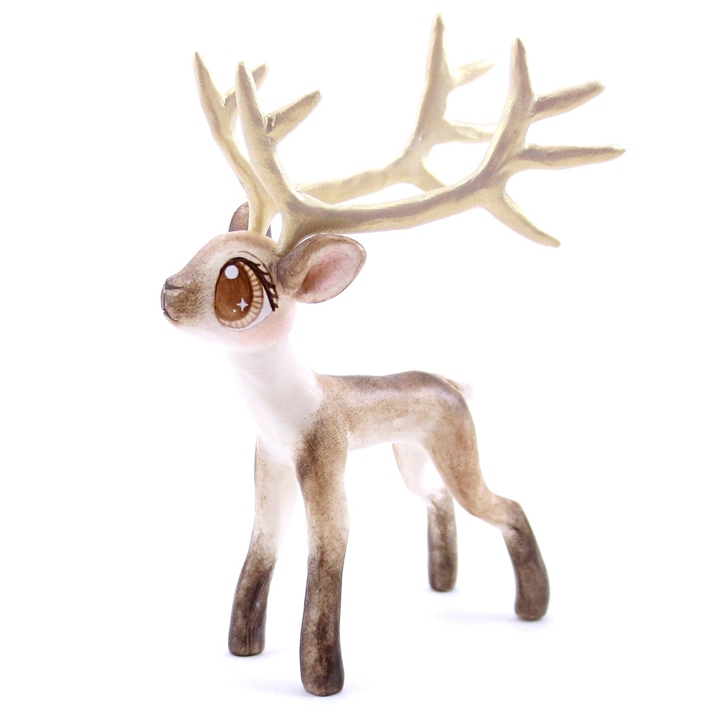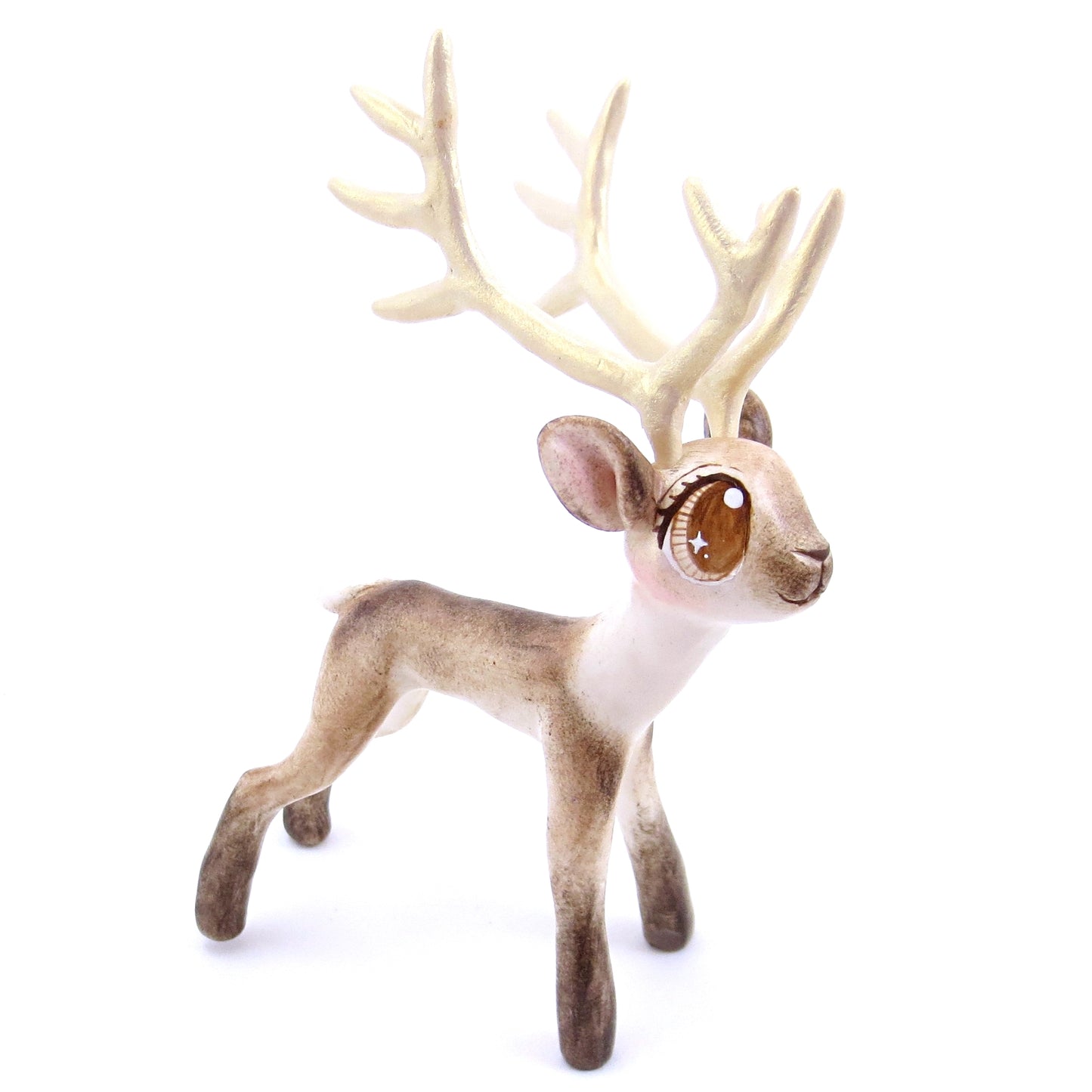 Big-Antlered Reindeer Figurine - Polymer Clay Christmas Animals