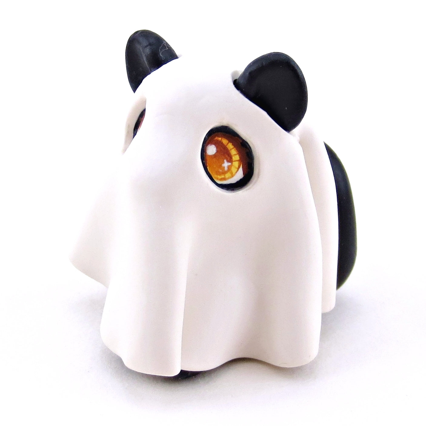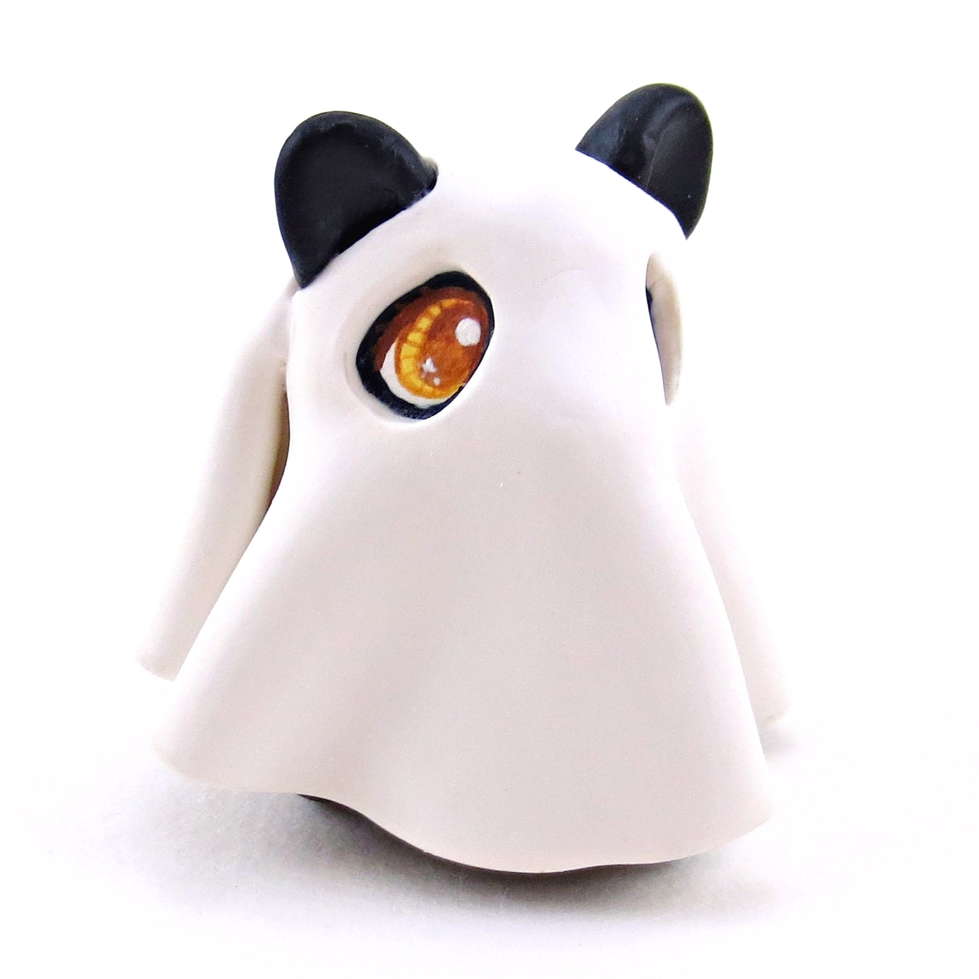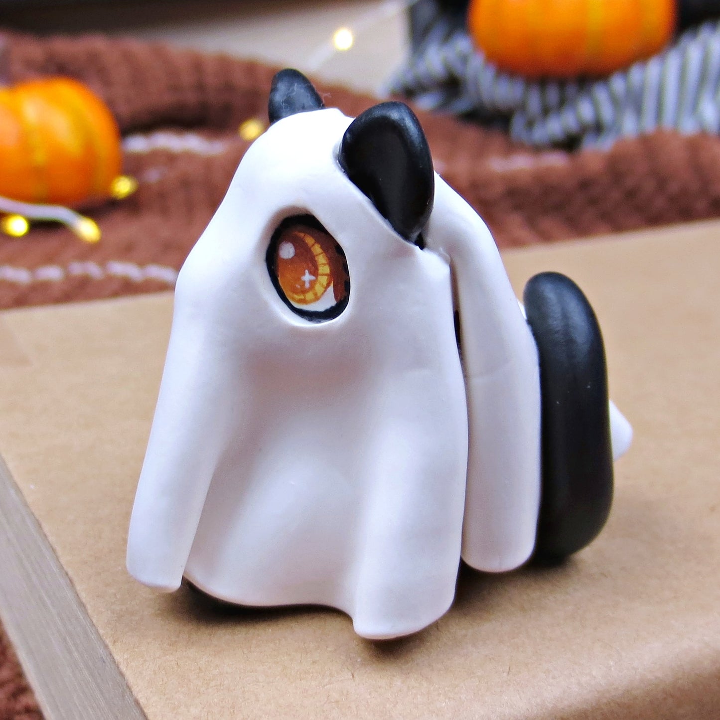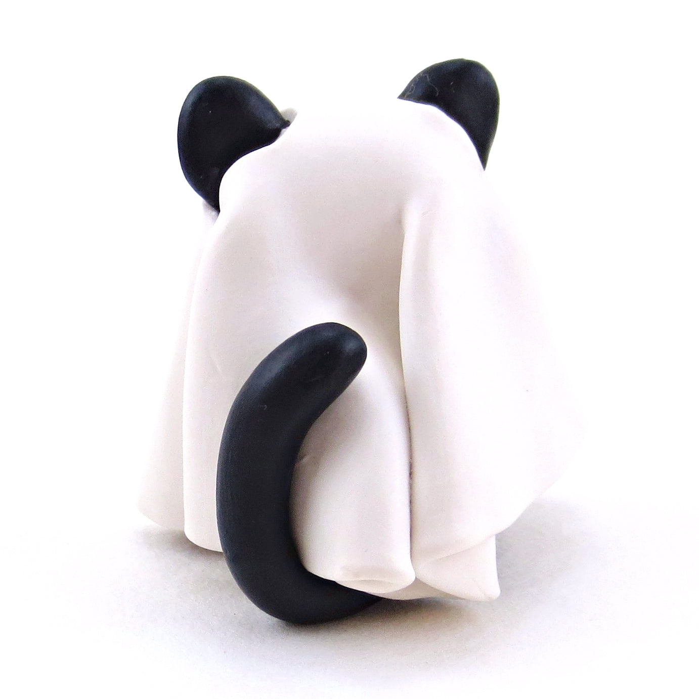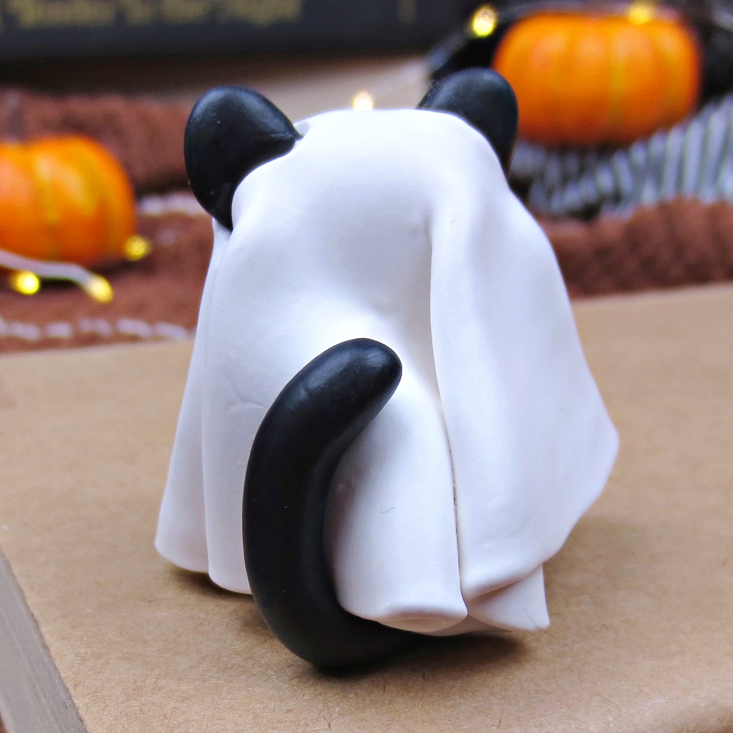 Black Cat in Ghost Costume Figurine - Polymer Clay Halloween Collection
