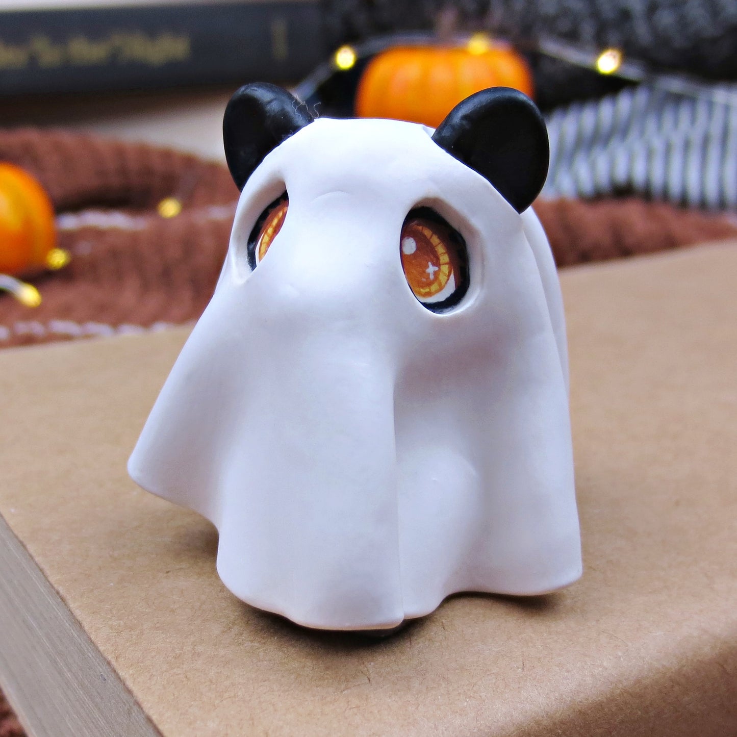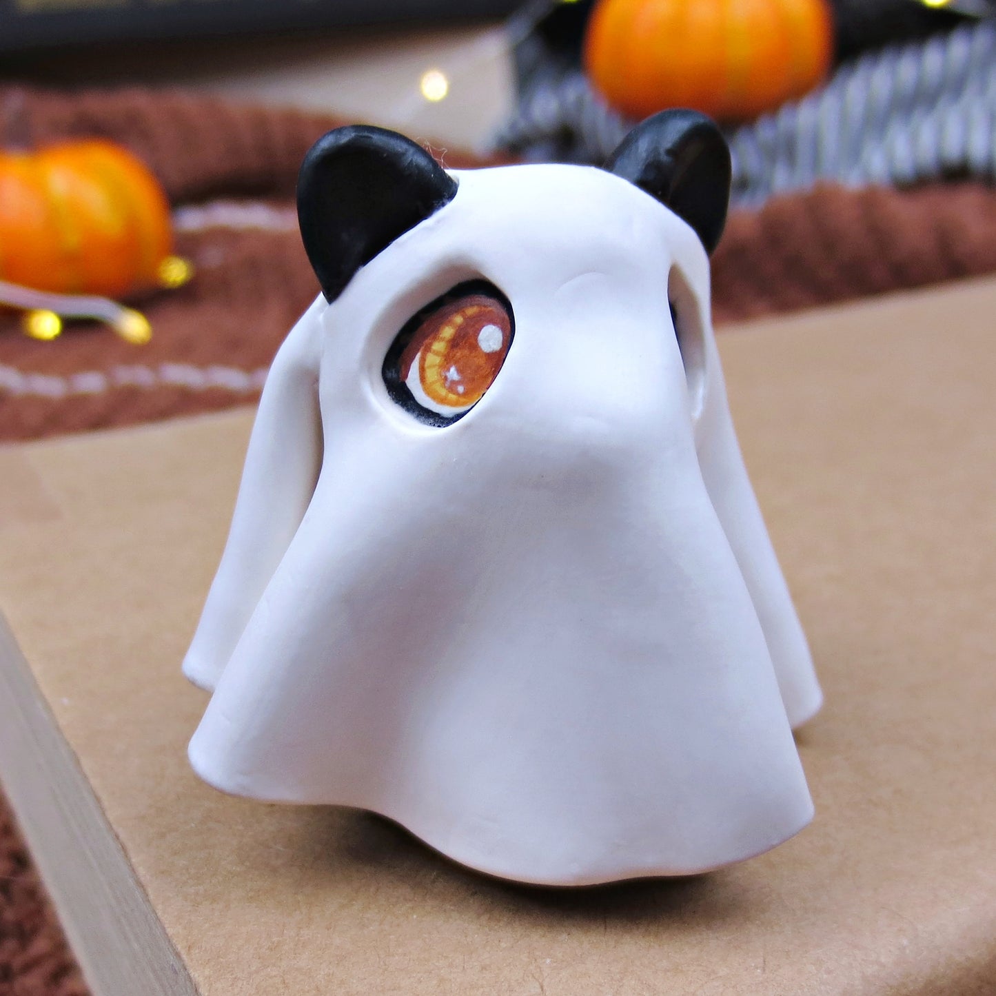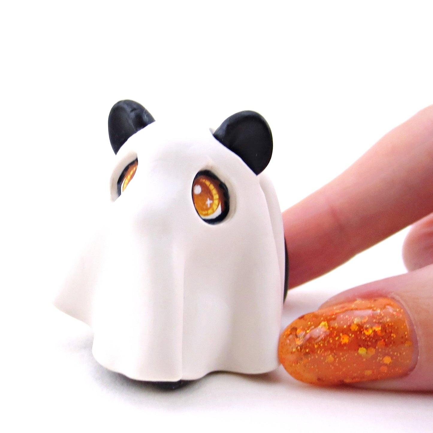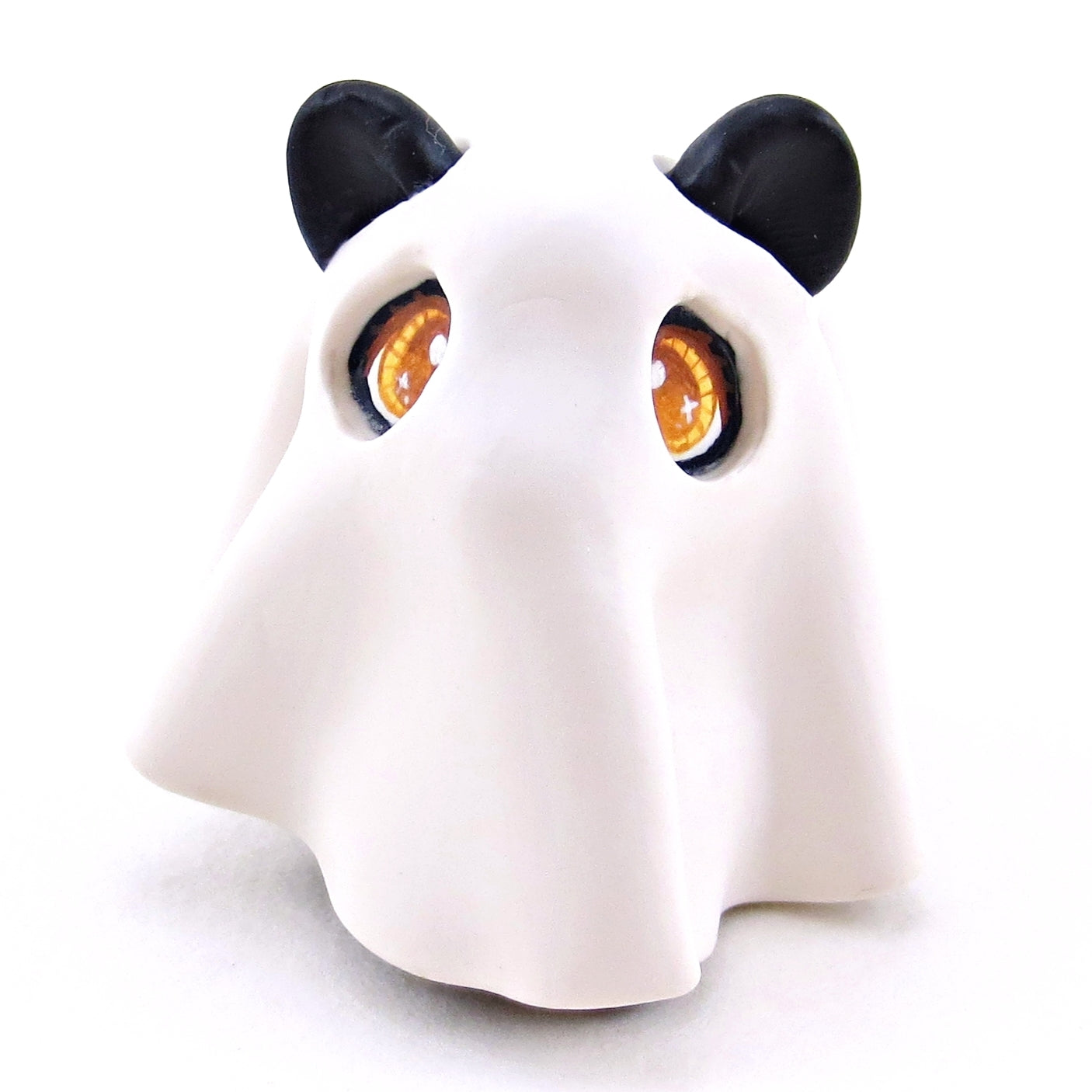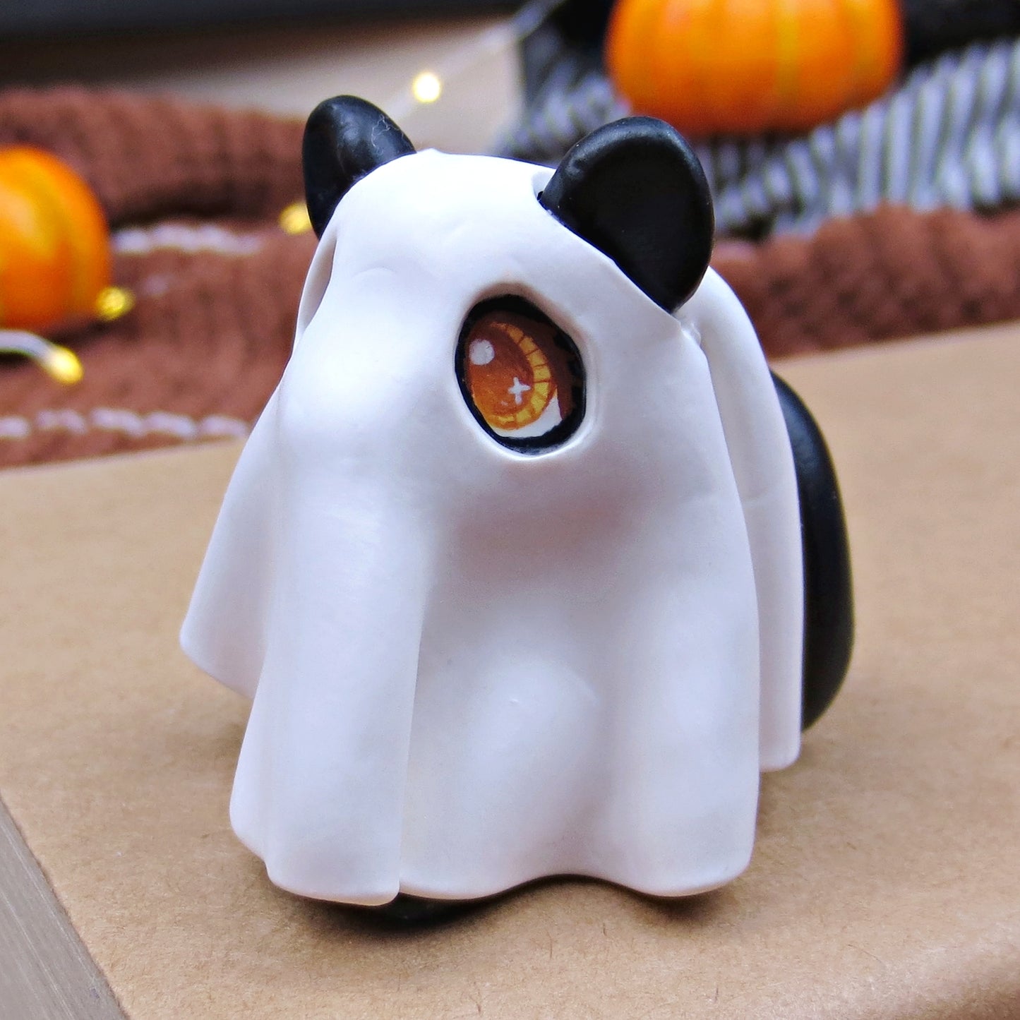Black Cat in Ghost Costume Figurine - Polymer Clay Halloween Collection