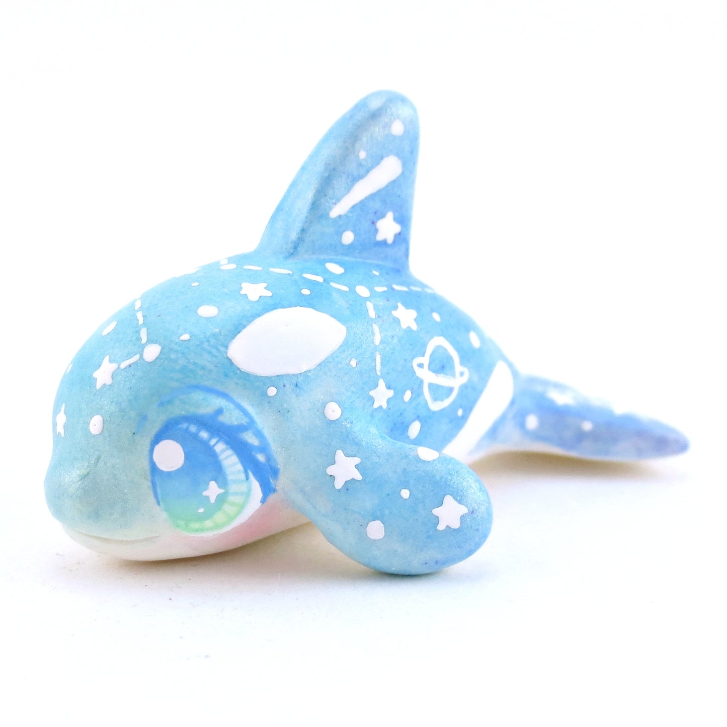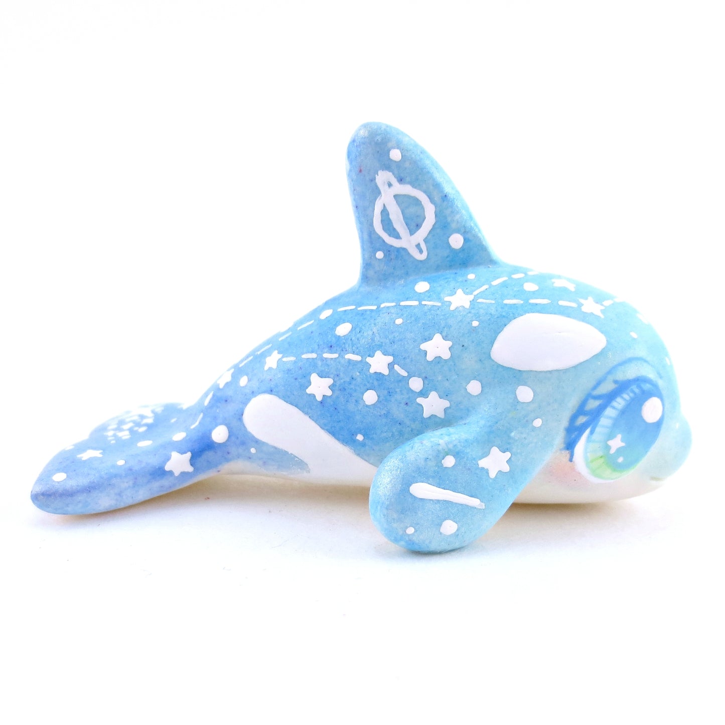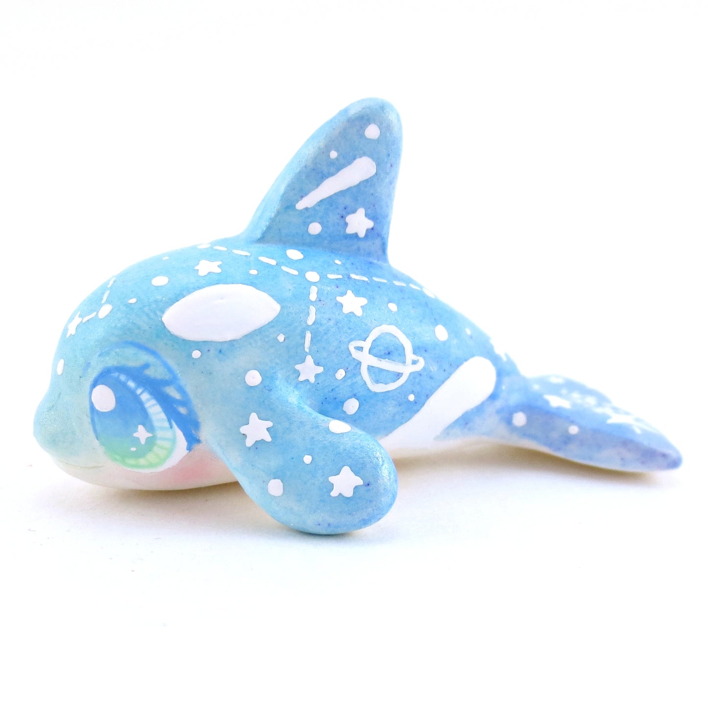 Blue/Green Constellation Ombre Orca Whale Figurine - Polymer Clay Enchanted Ocean Animals