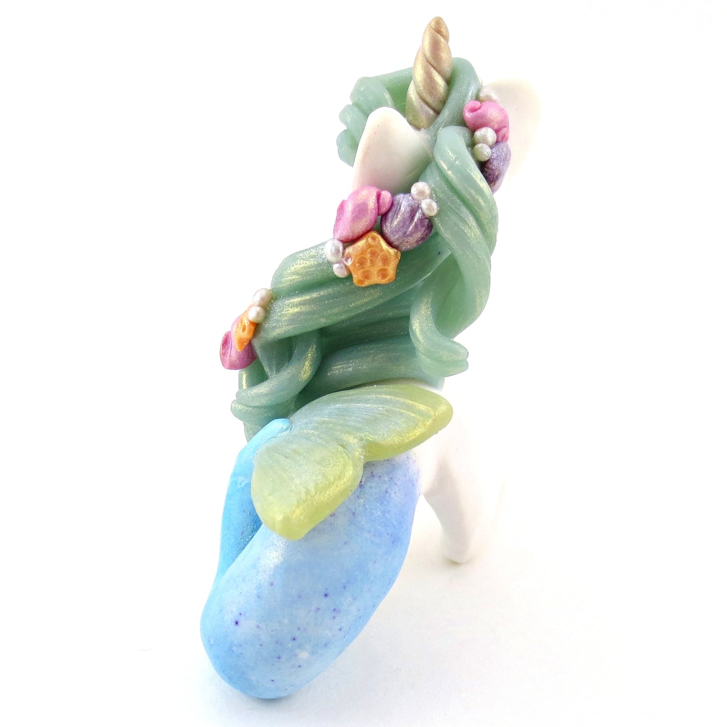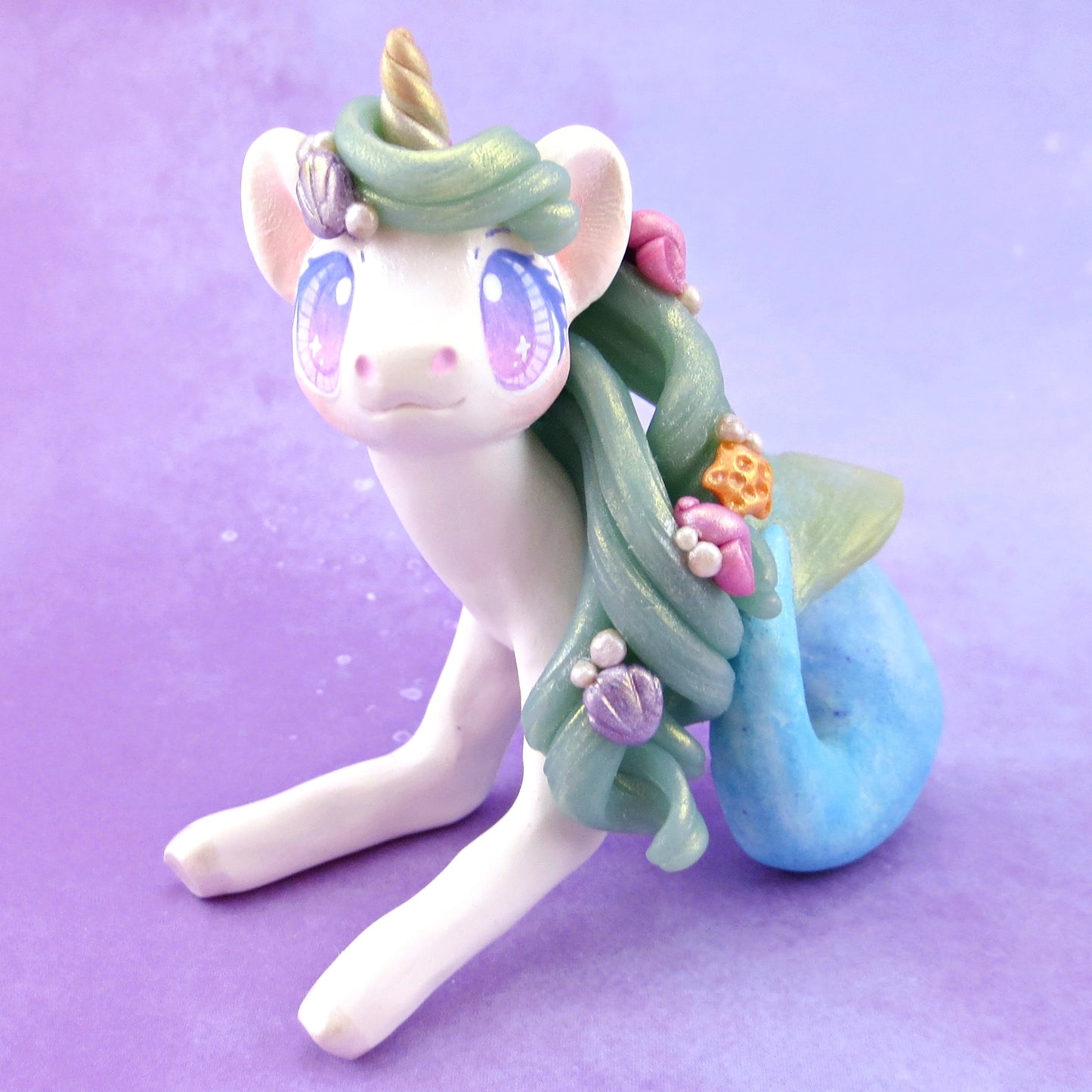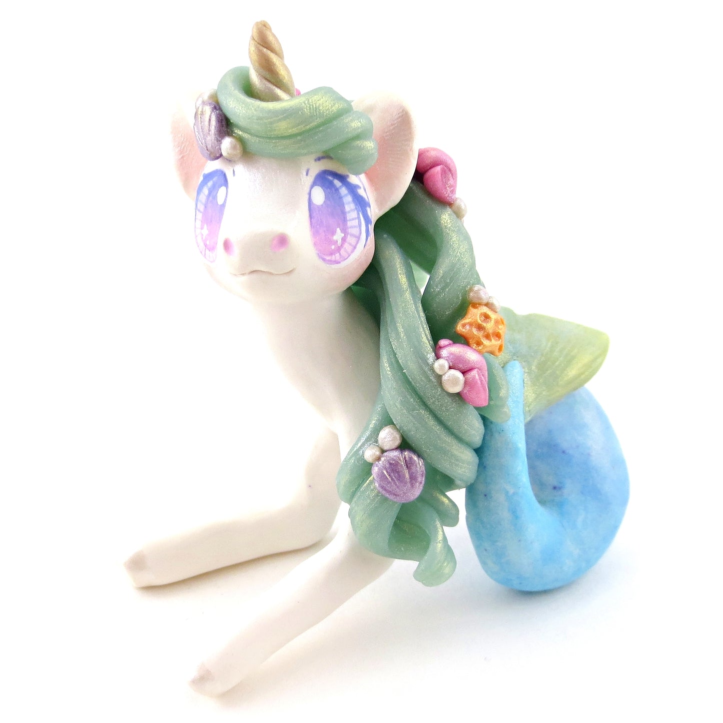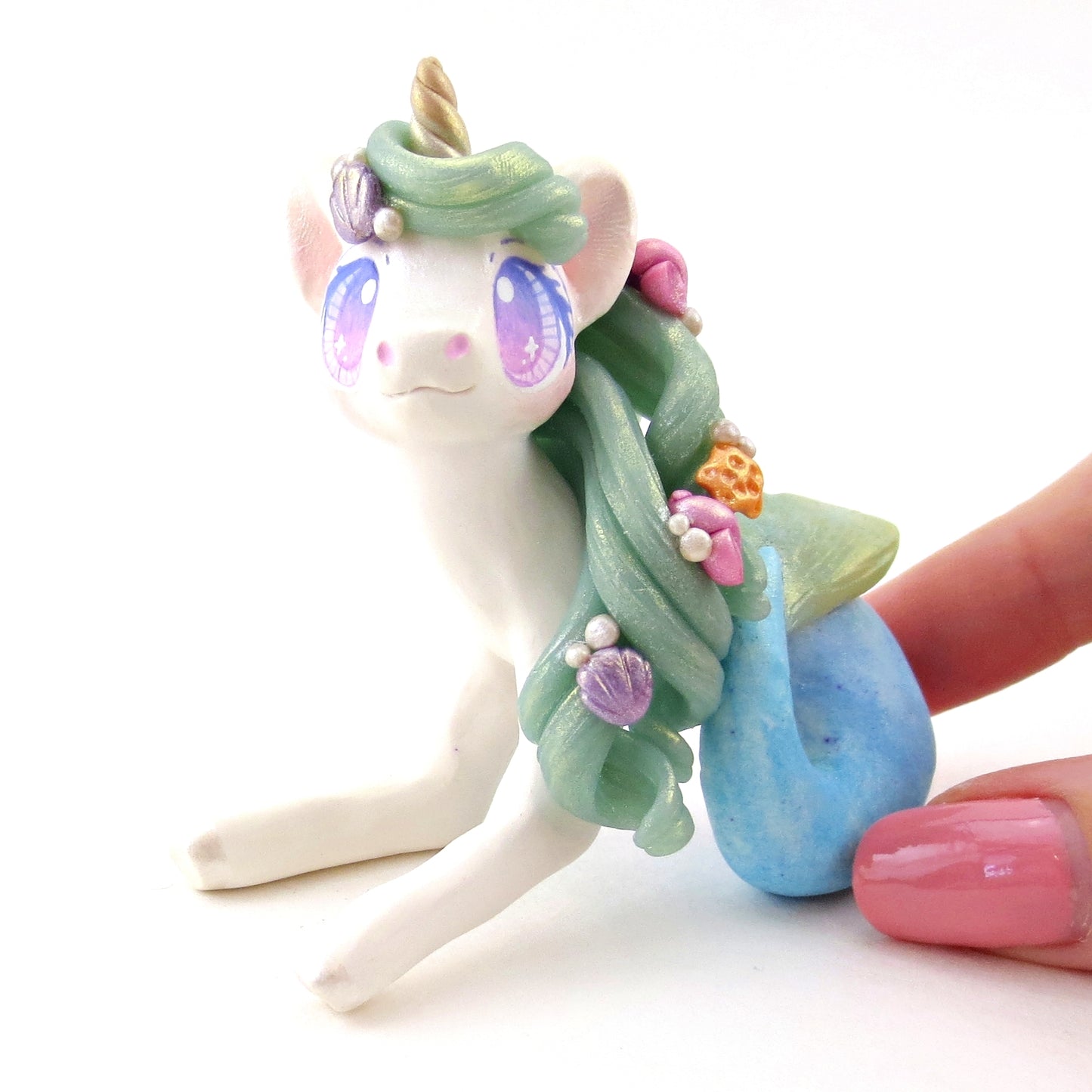 Blue Mermaid Unicorn Figurine - Polymer Clay Celestial Sea Animals