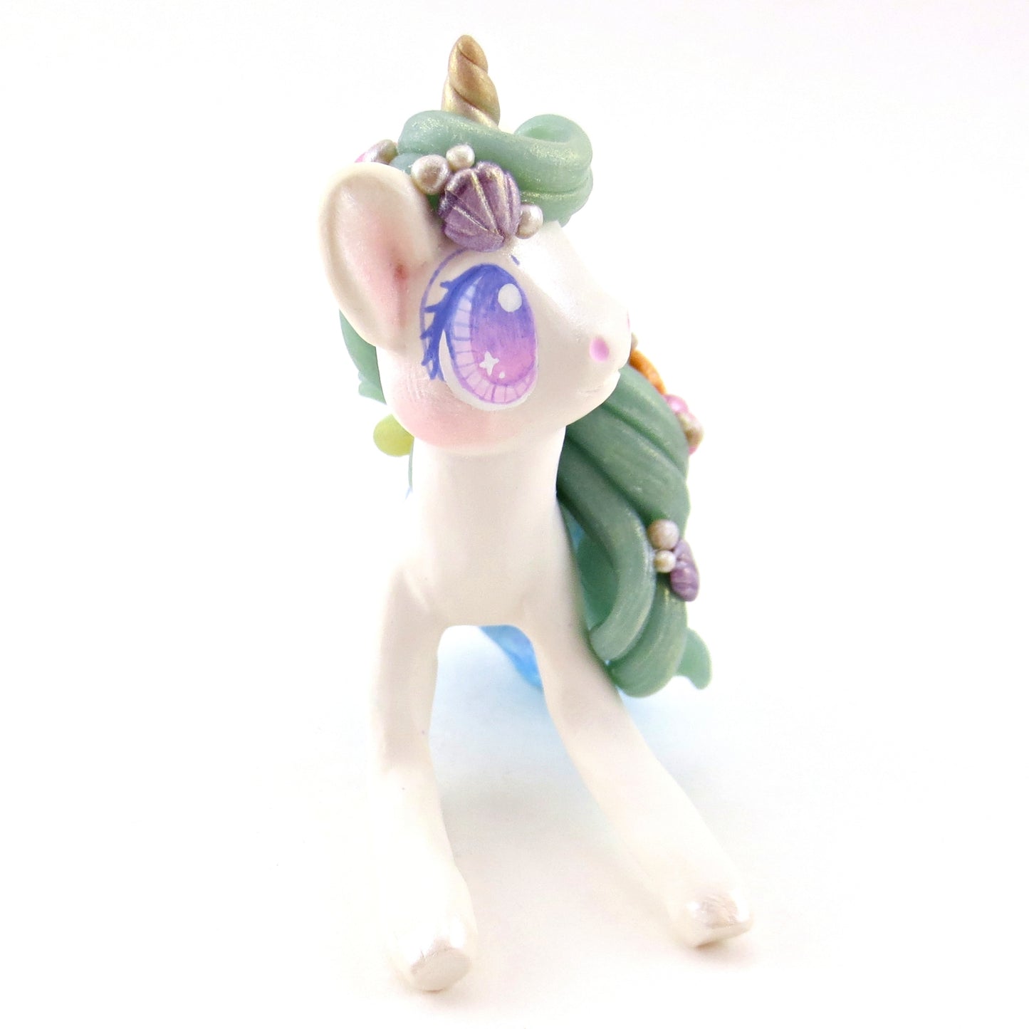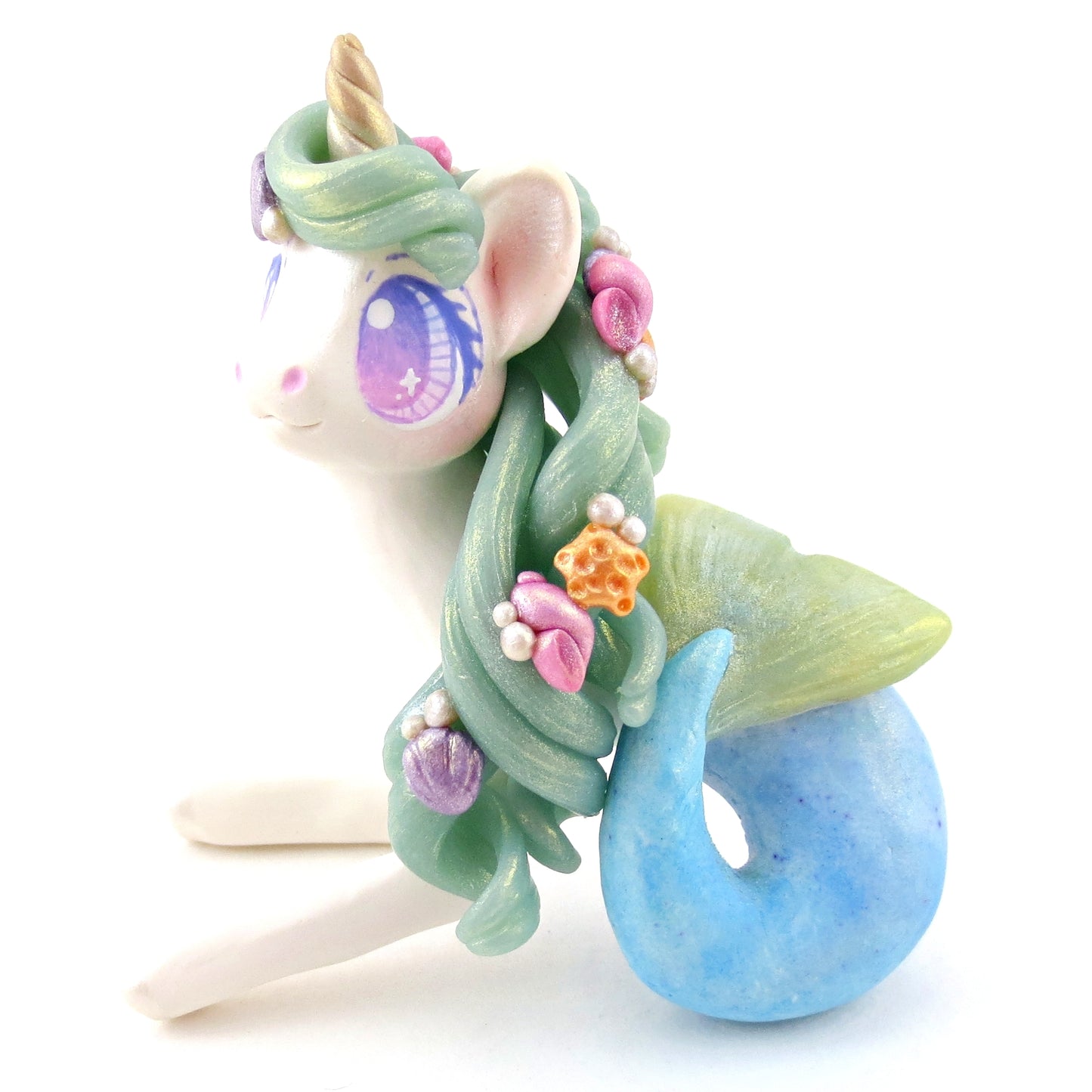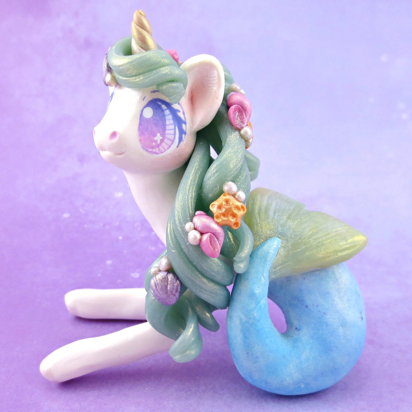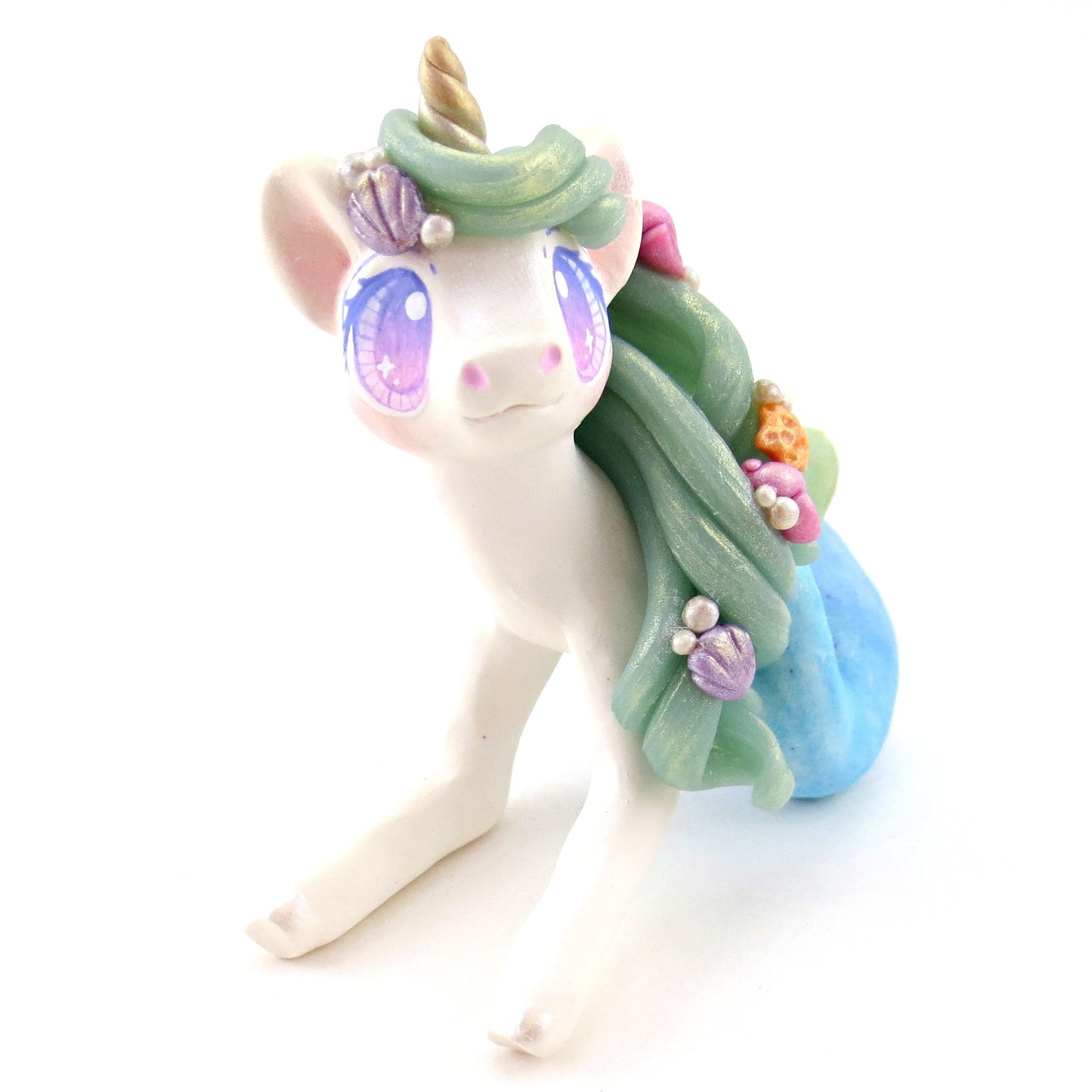 Blue Mermaid Unicorn Figurine - Polymer Clay Celestial Sea Animals