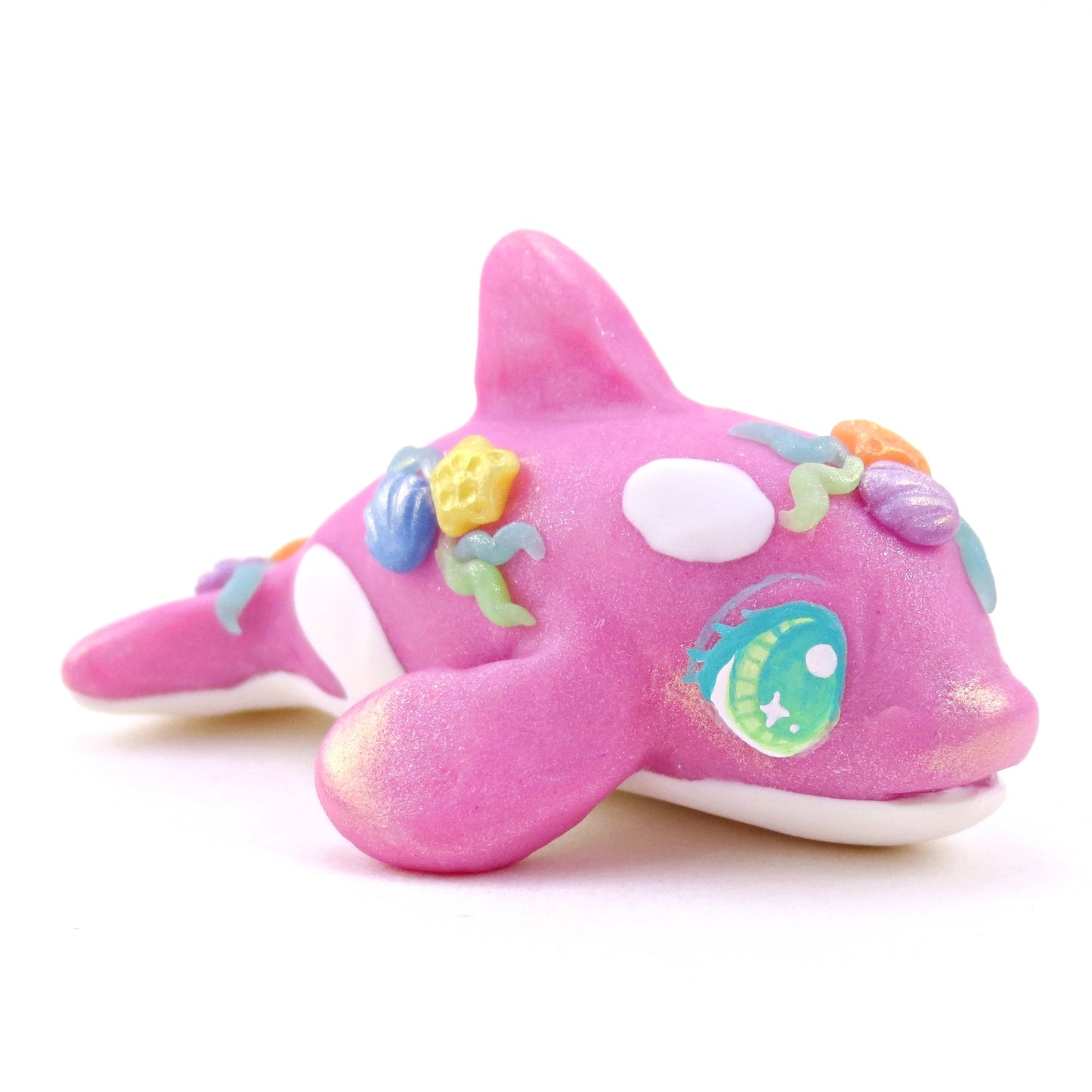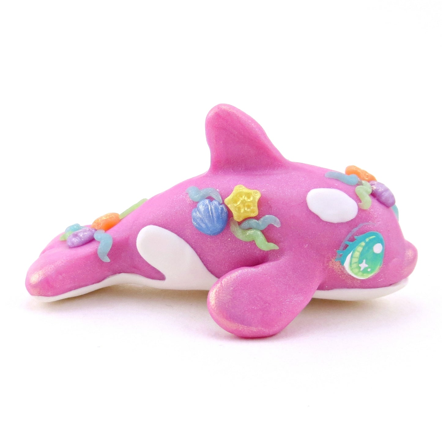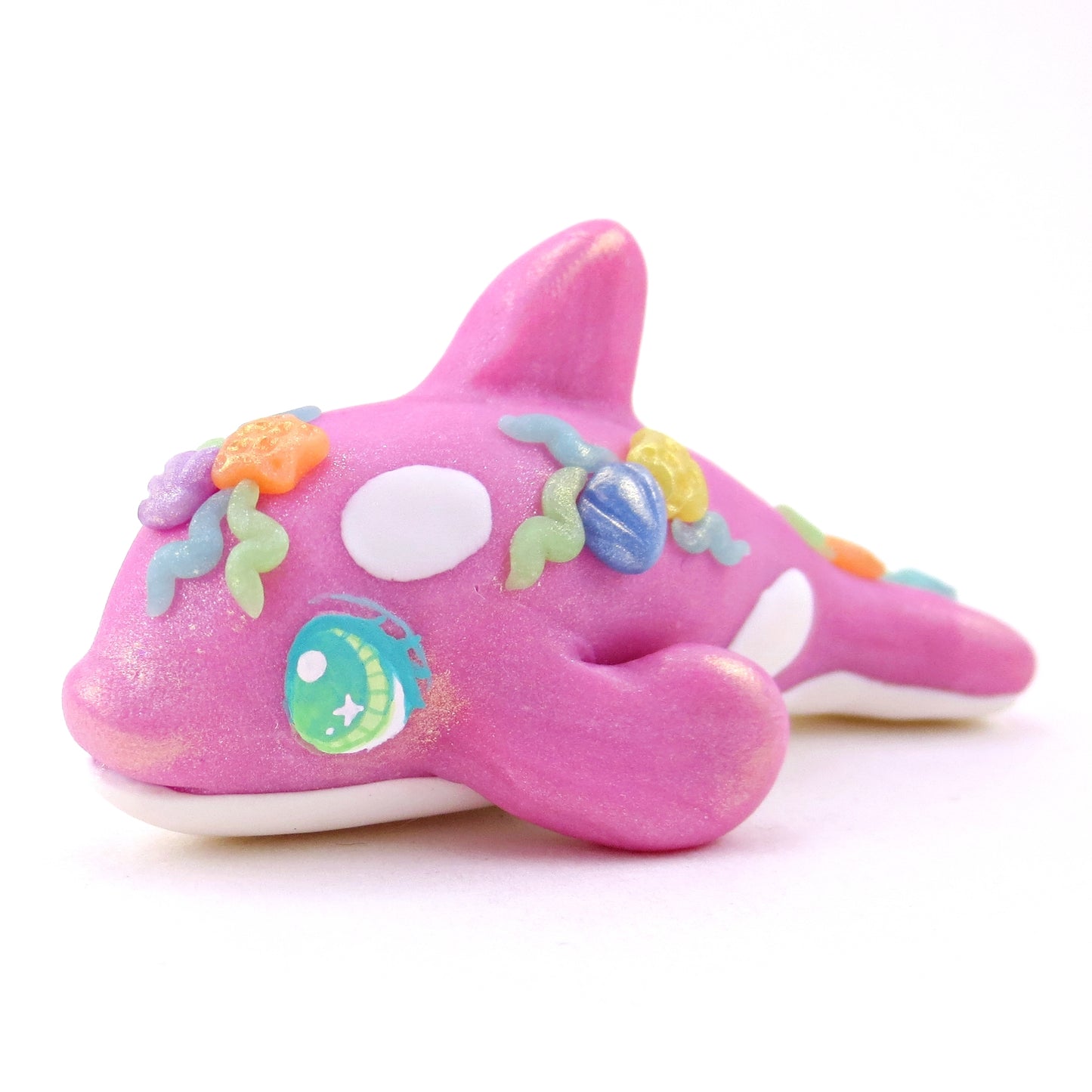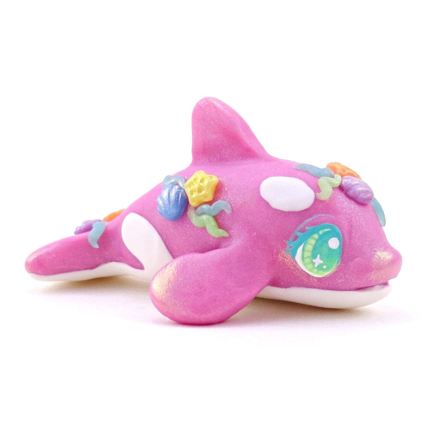 Seashell Pink/Purple Orca Figurine - Polymer Clay Ocean Collection
