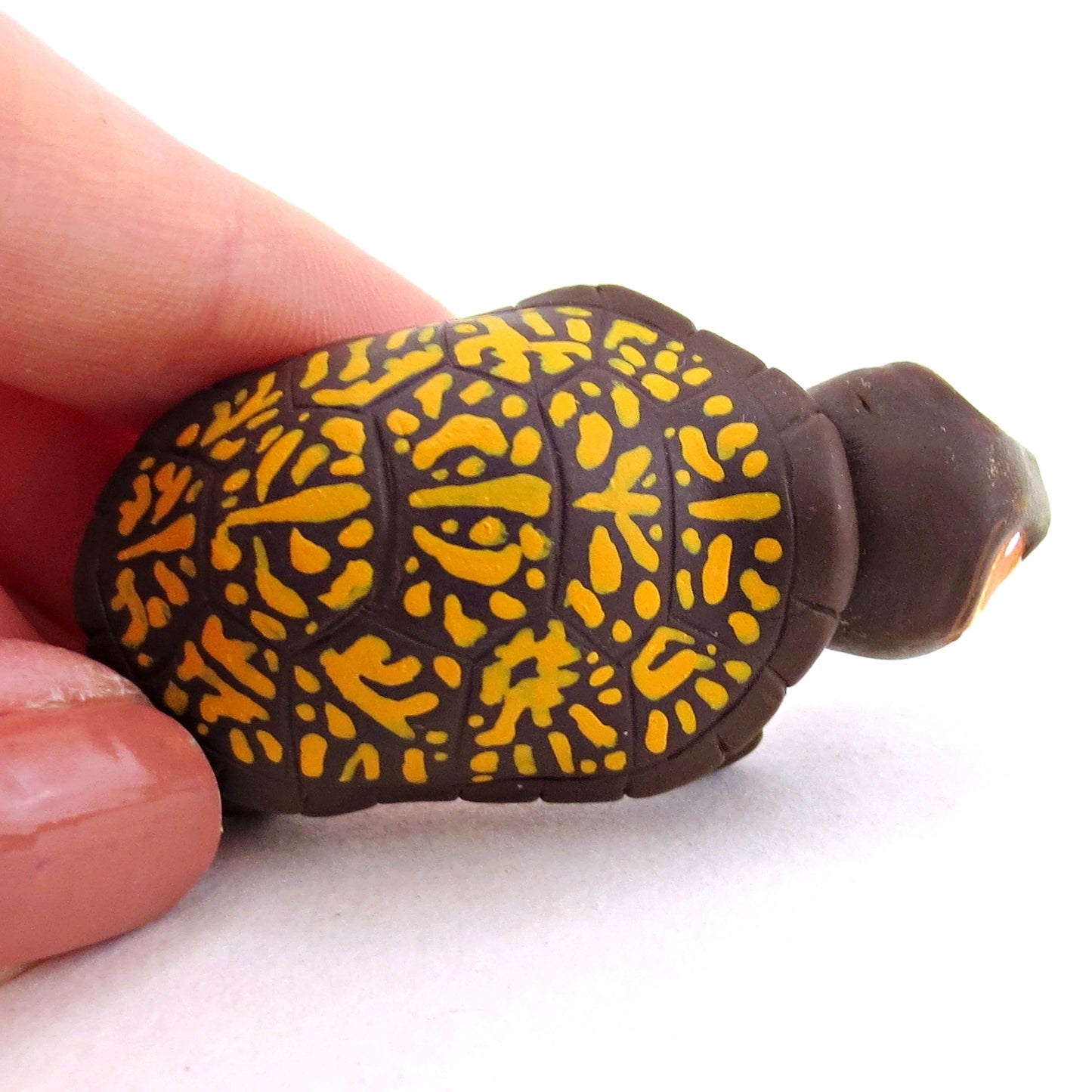 Brown Box Turtle Figurine - Polymer Clay Fall Animals