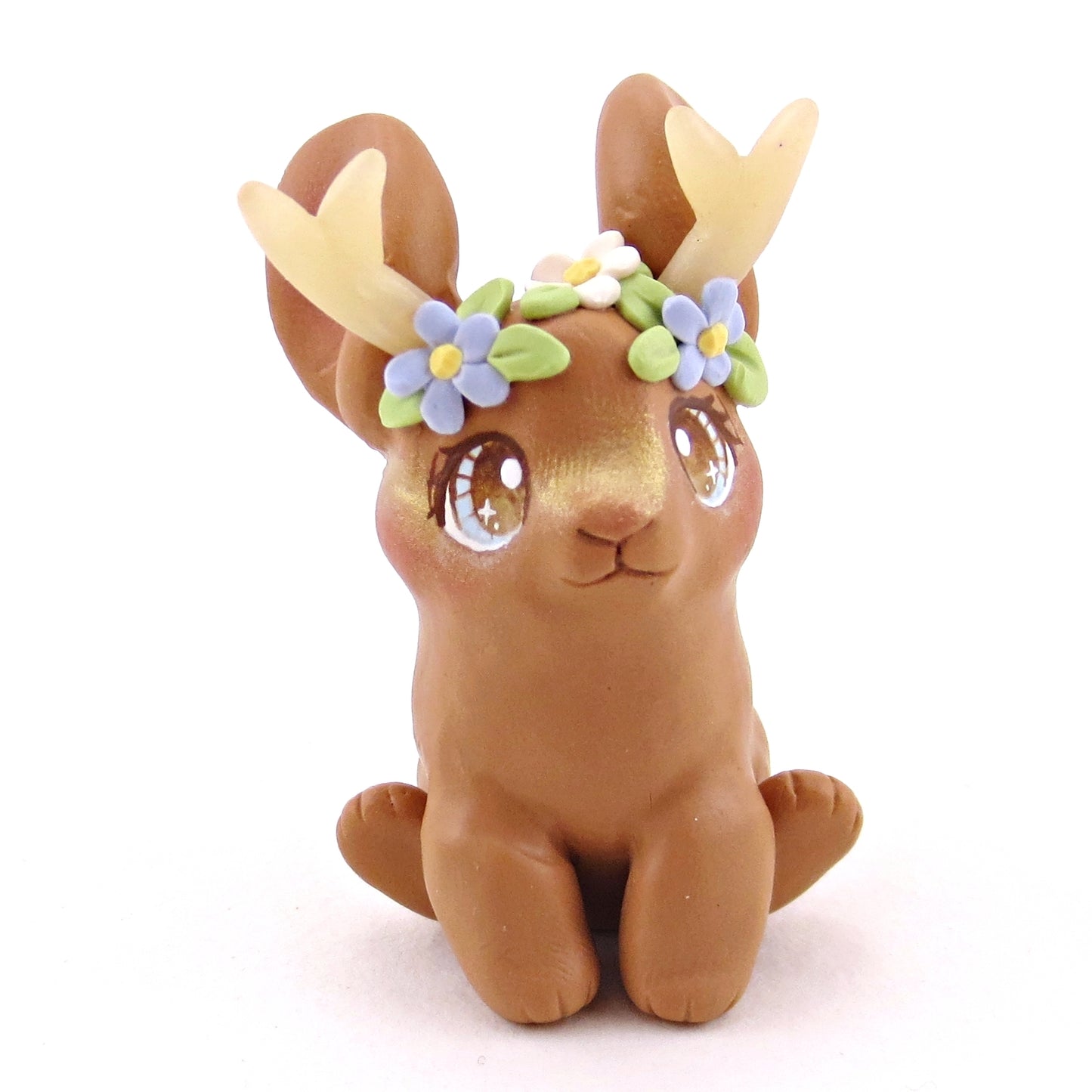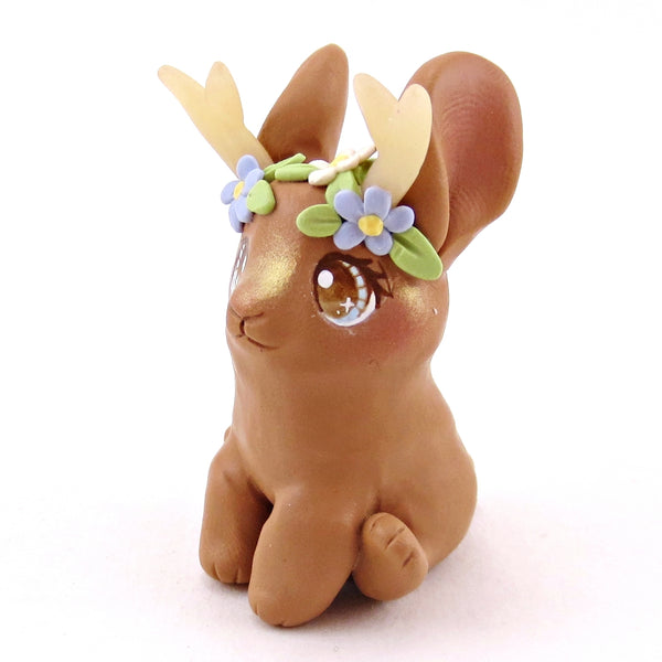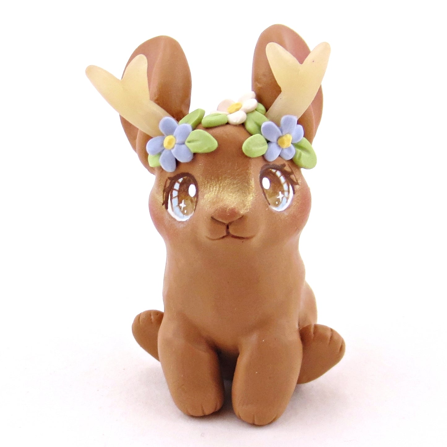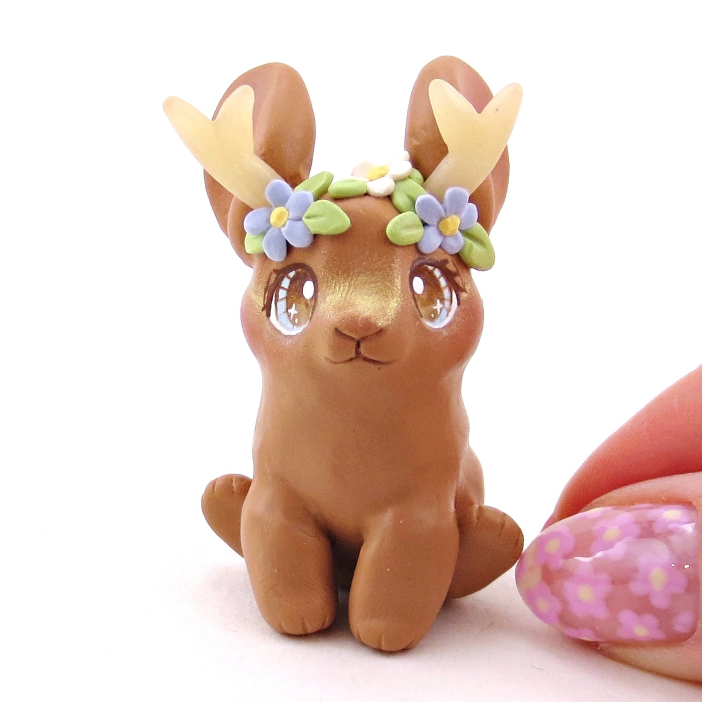 Brown Flowery Jackalope Figurine - Polymer Clay Animals Fairytale Spring Collection