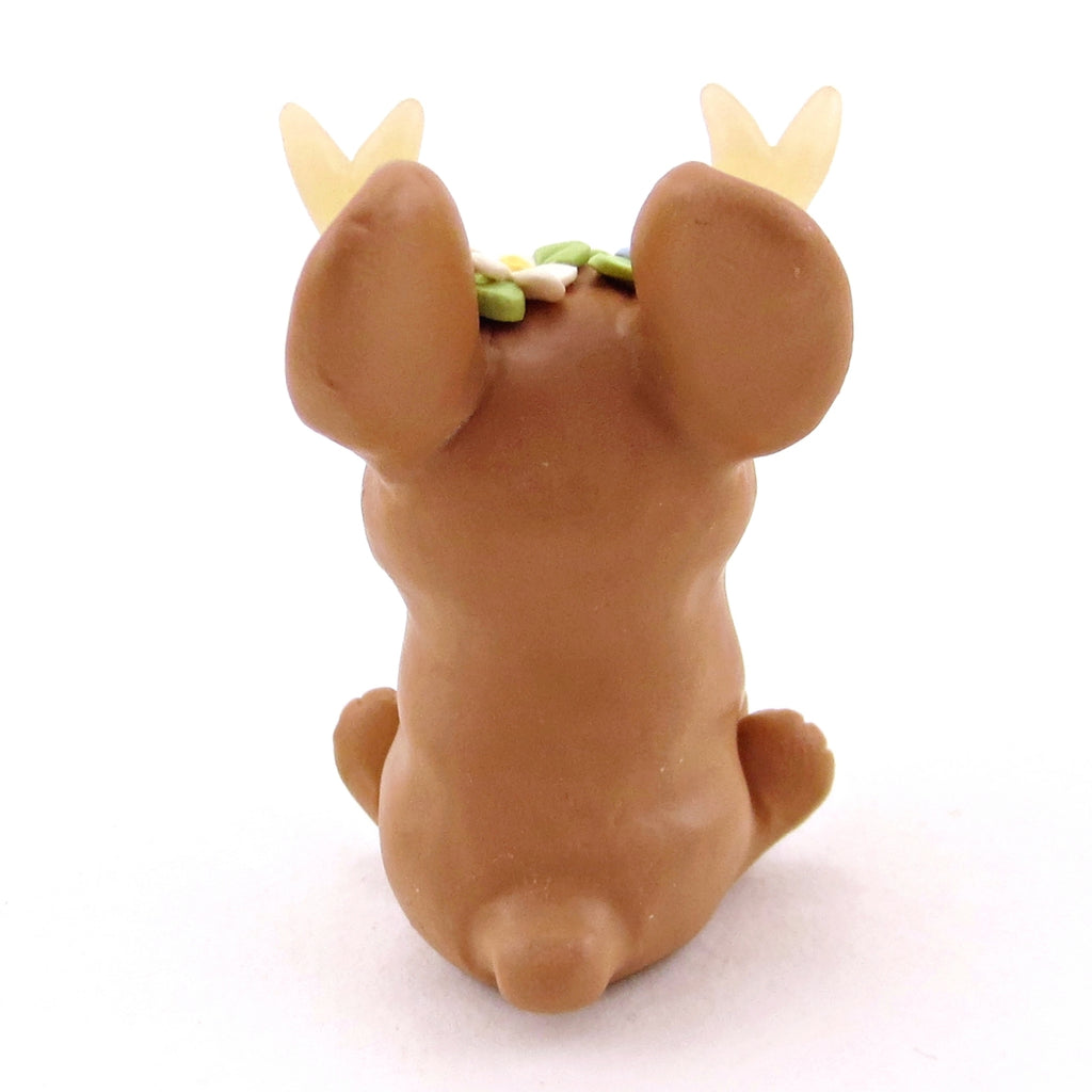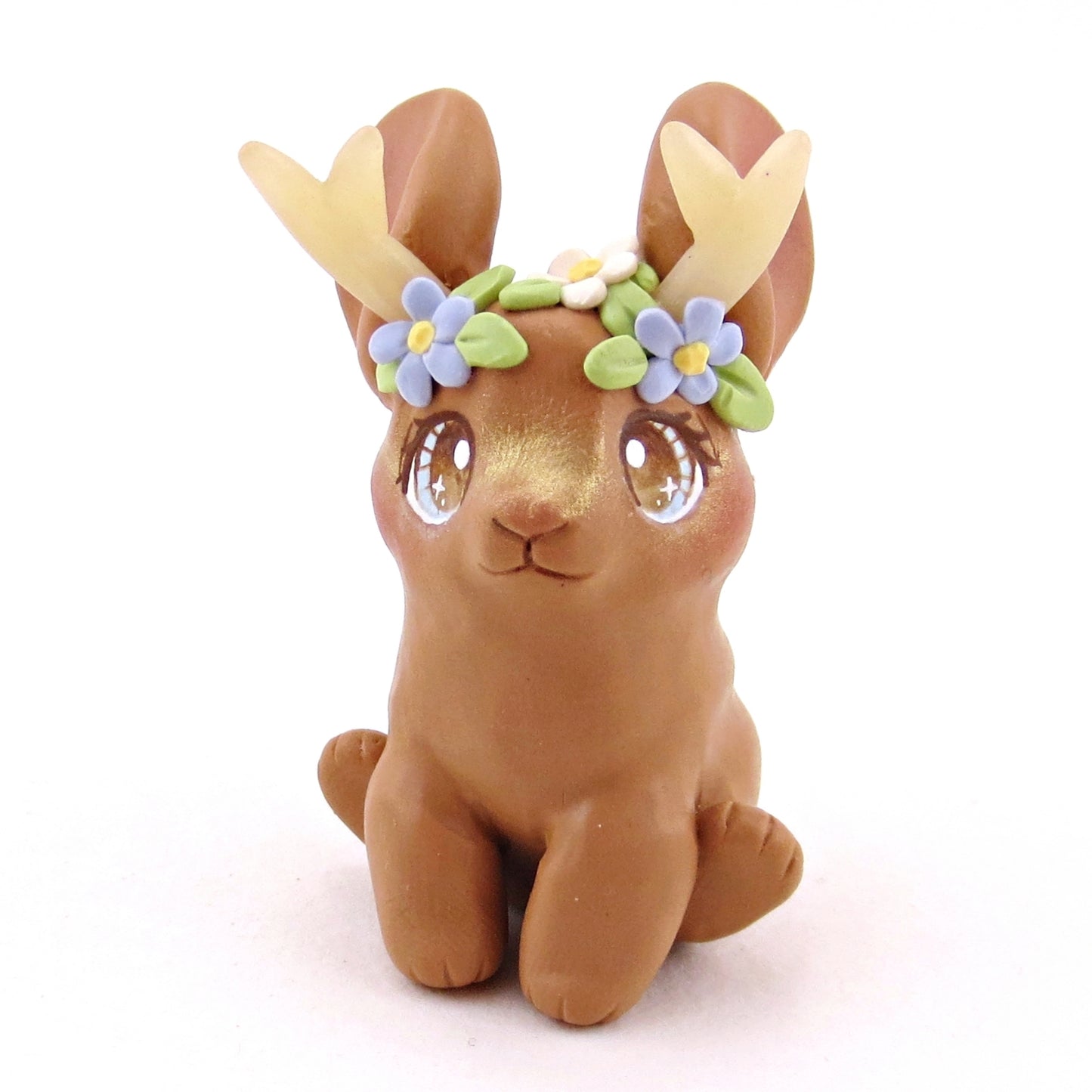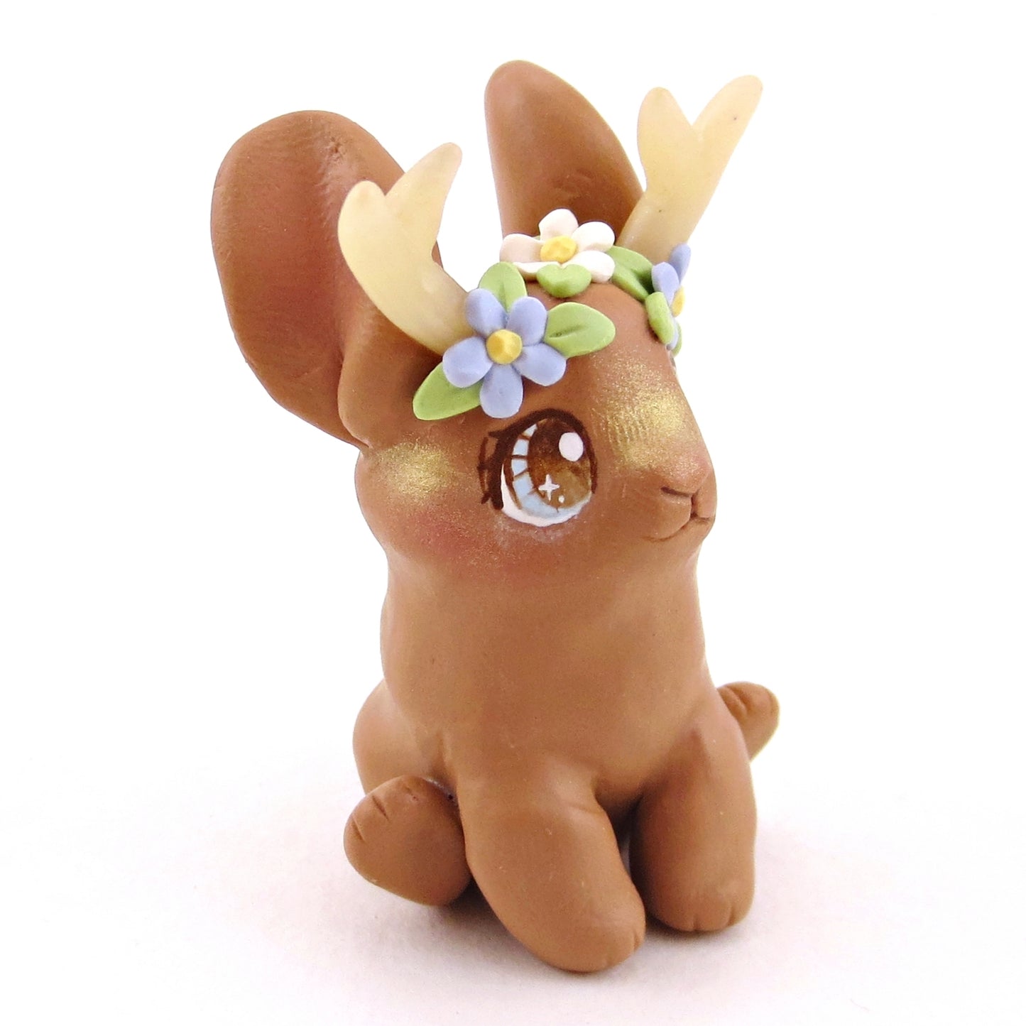 Brown Flowery Jackalope Figurine - Polymer Clay Animals Fairytale Spring Collection