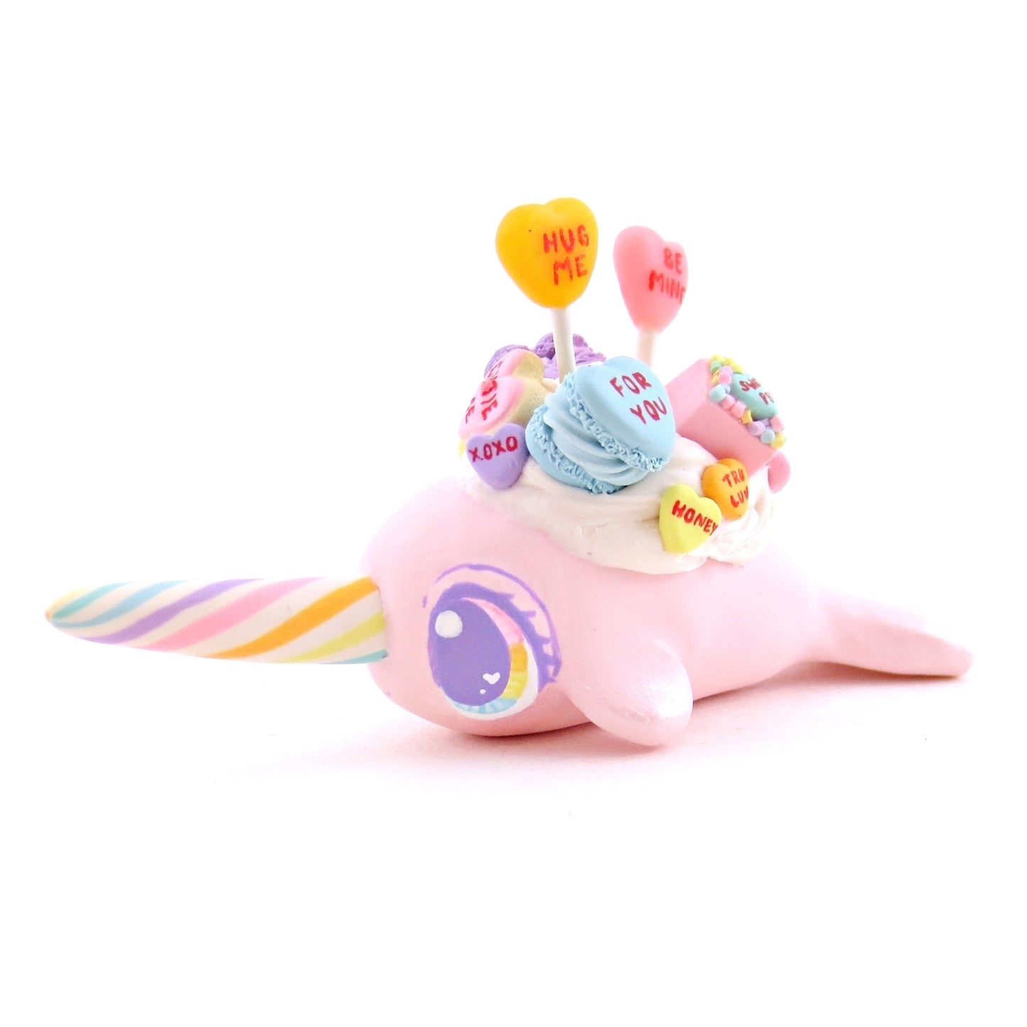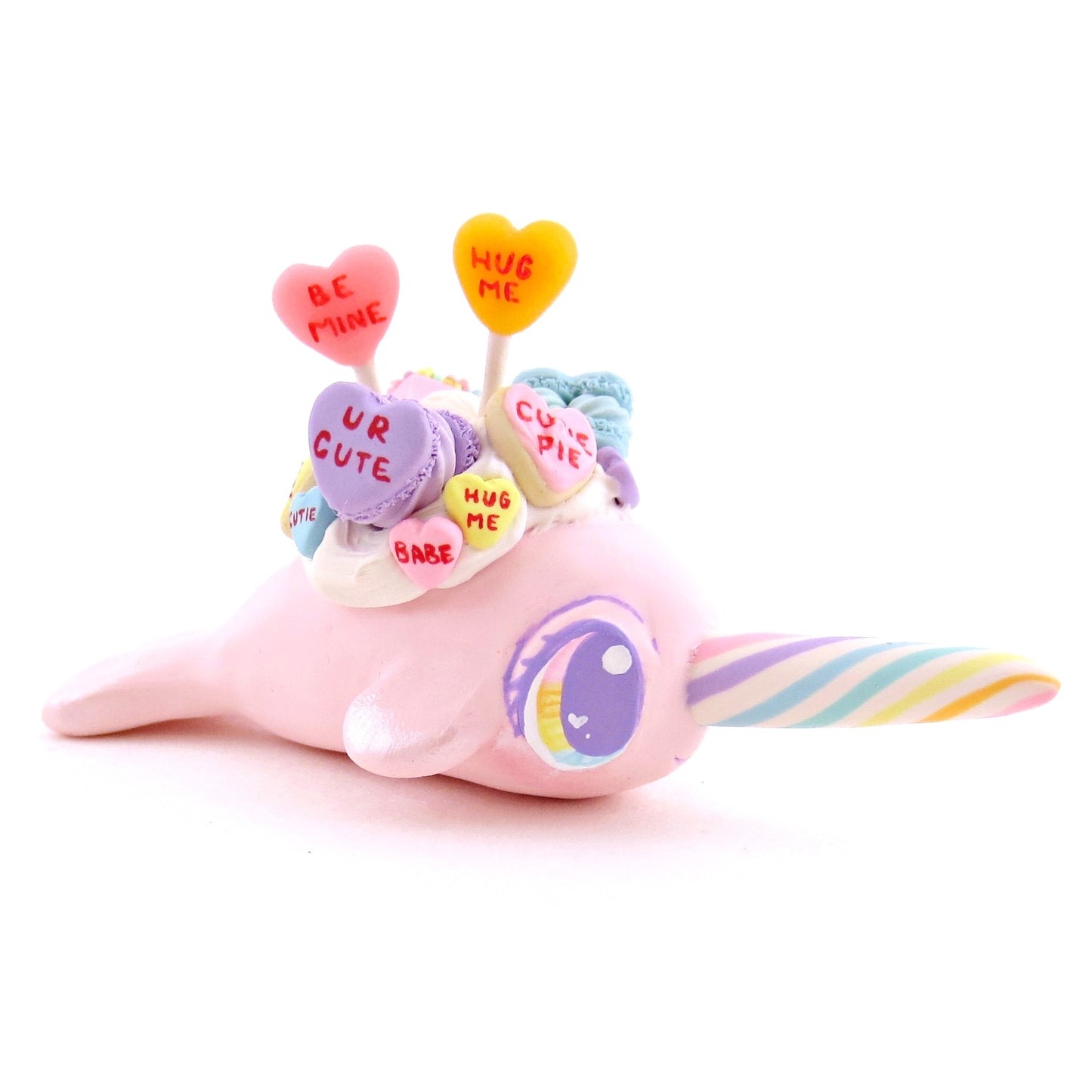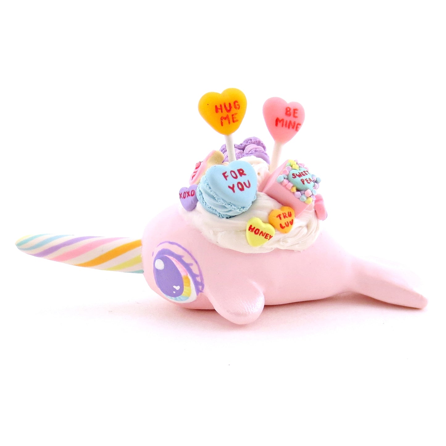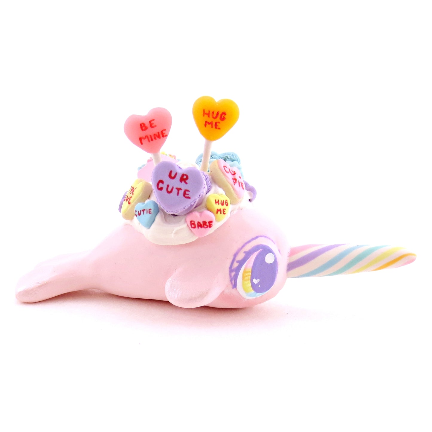 Candy Heart Light Pink Narwhal Figurine - Polymer Clay Valentine Animals